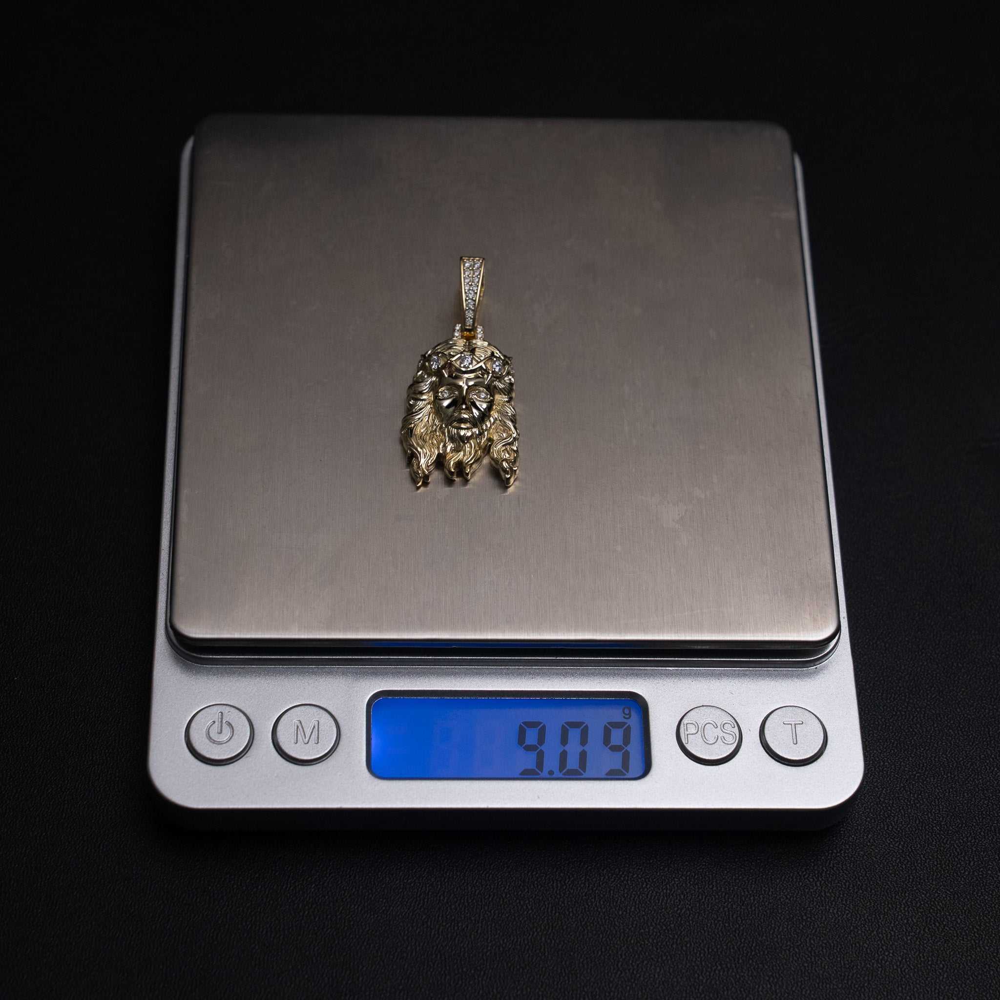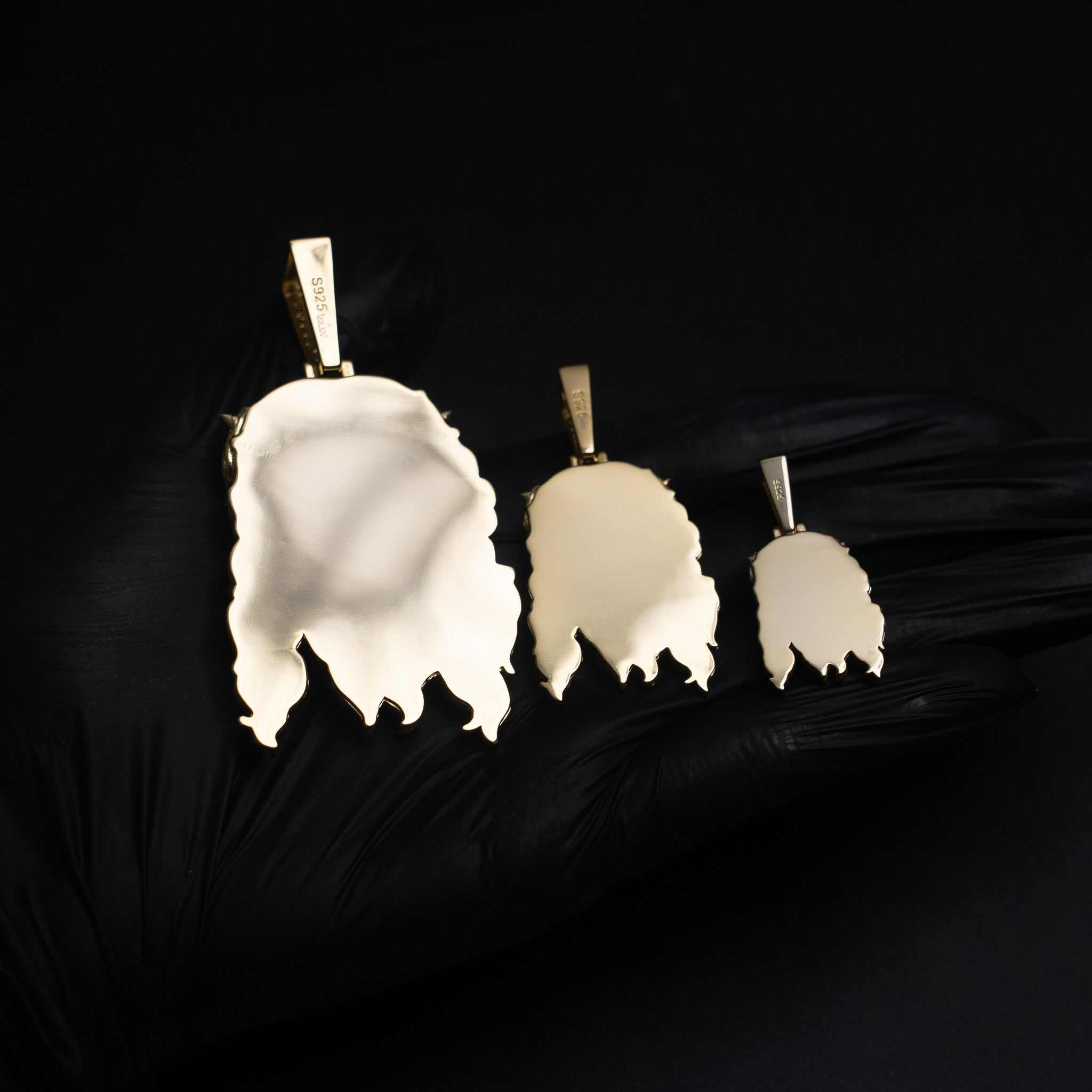 Moissanite Jesus Piece Head Pendant 14K Gold Plated Solid 925 Sterling Silver ‐ Small 1"