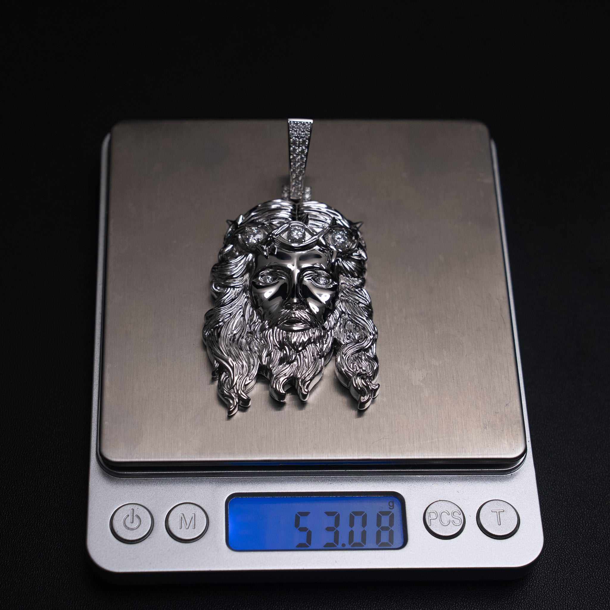 Moissanite Jesus Piece Head Pendant Moissanite Solid 925 Sterling Silver ‐ Large 2.5"