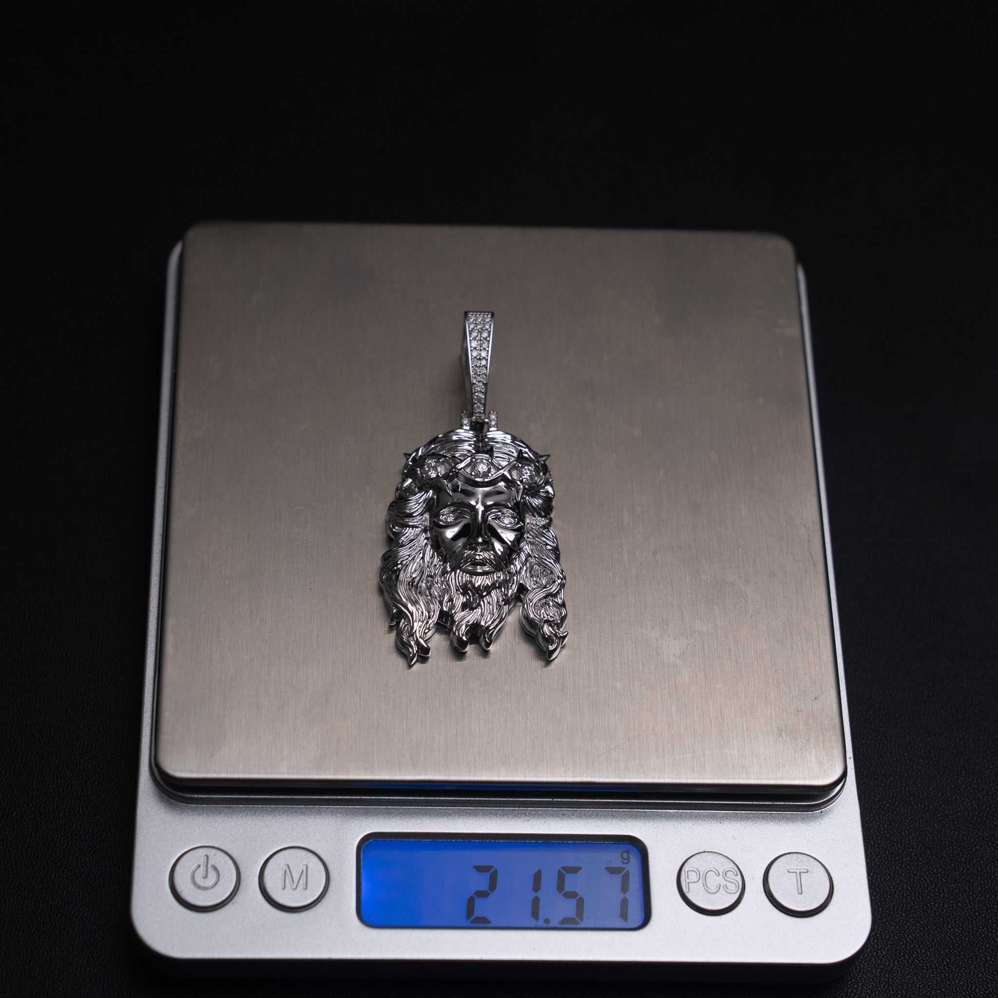 Moissanite Jesus Piece Head Pendant Moissanite Solid 925 Sterling Silver ‐ Medium 1.5"