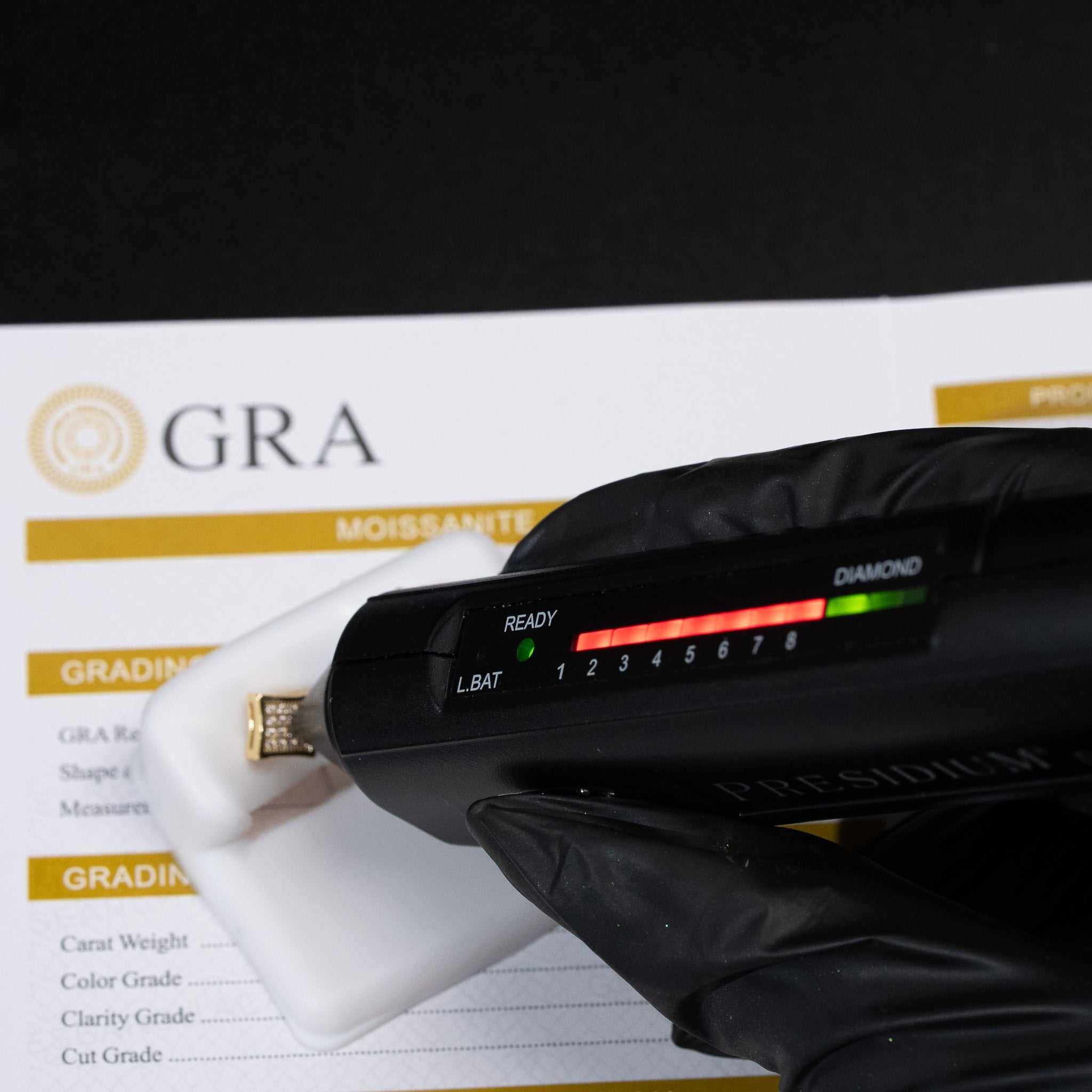 - Total Carat Weight: 0.13 carat moissanite (VVS1, D color)