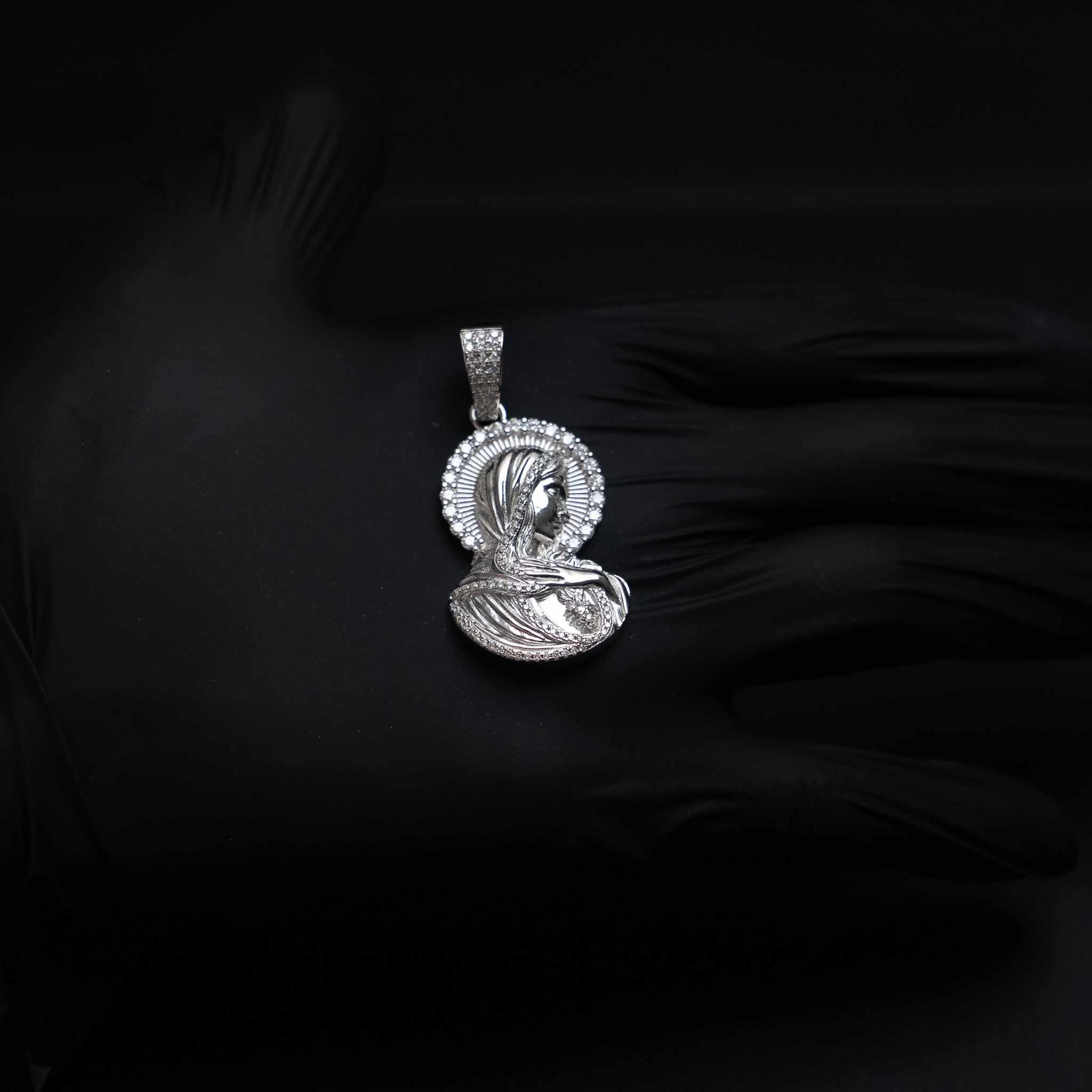 Moissanite Virgin Mary 925 Sterling Silver Pendant ‐ Silver