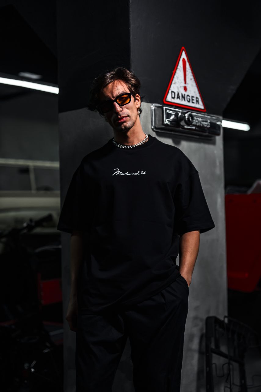This high-quality cotton t-shirt features a minimalist "Muhammad Ali" signature graphic on the chest, celebrating the spirit of the Greatest of All Time. Comfortable fit and durable design make it perfect for everyday wear.
