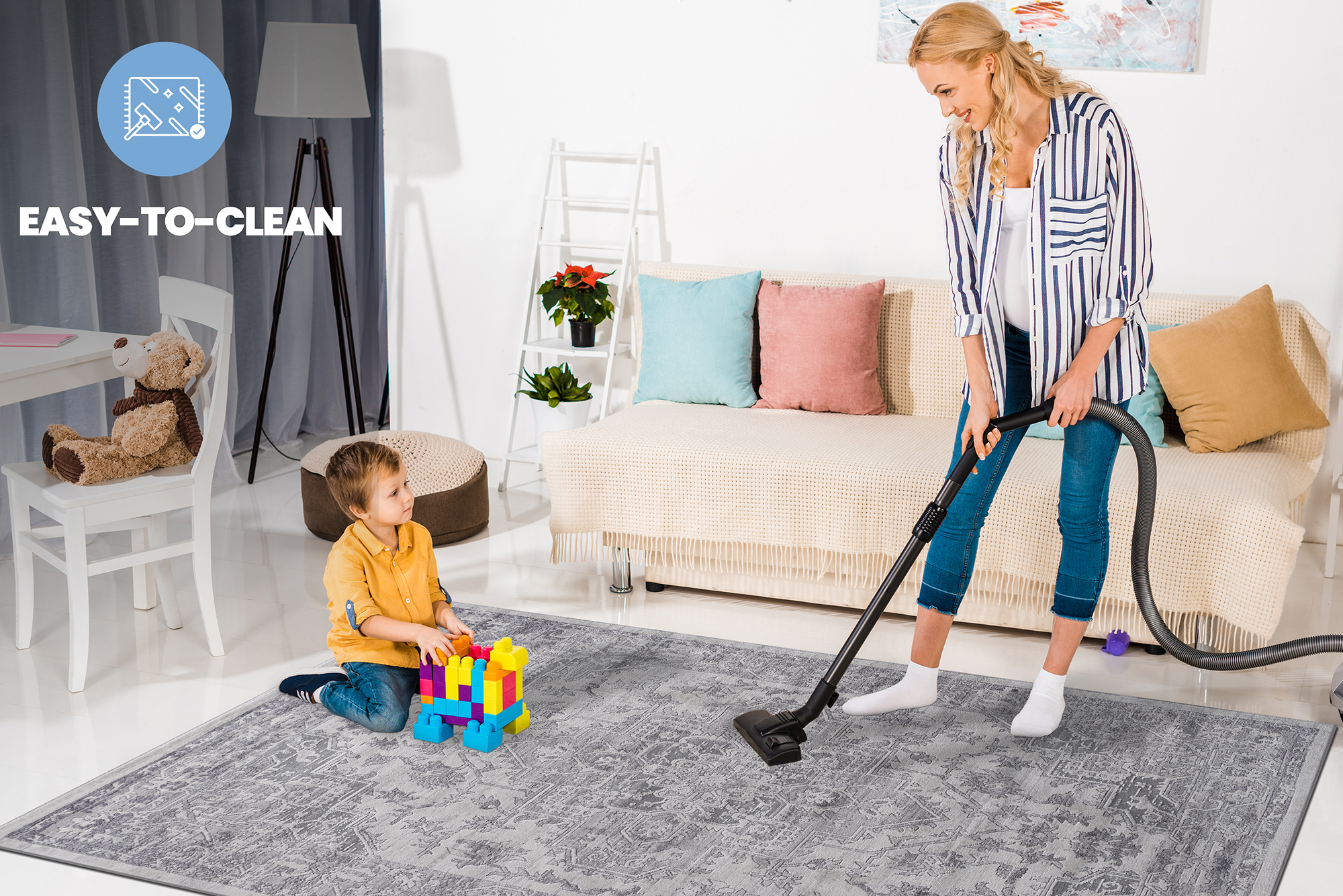 - Easy Maintenance & Durable: Stress-free cleaning includes regular vacuuming and gently blotting out minor stains with a mild detergent or carpet cleaner