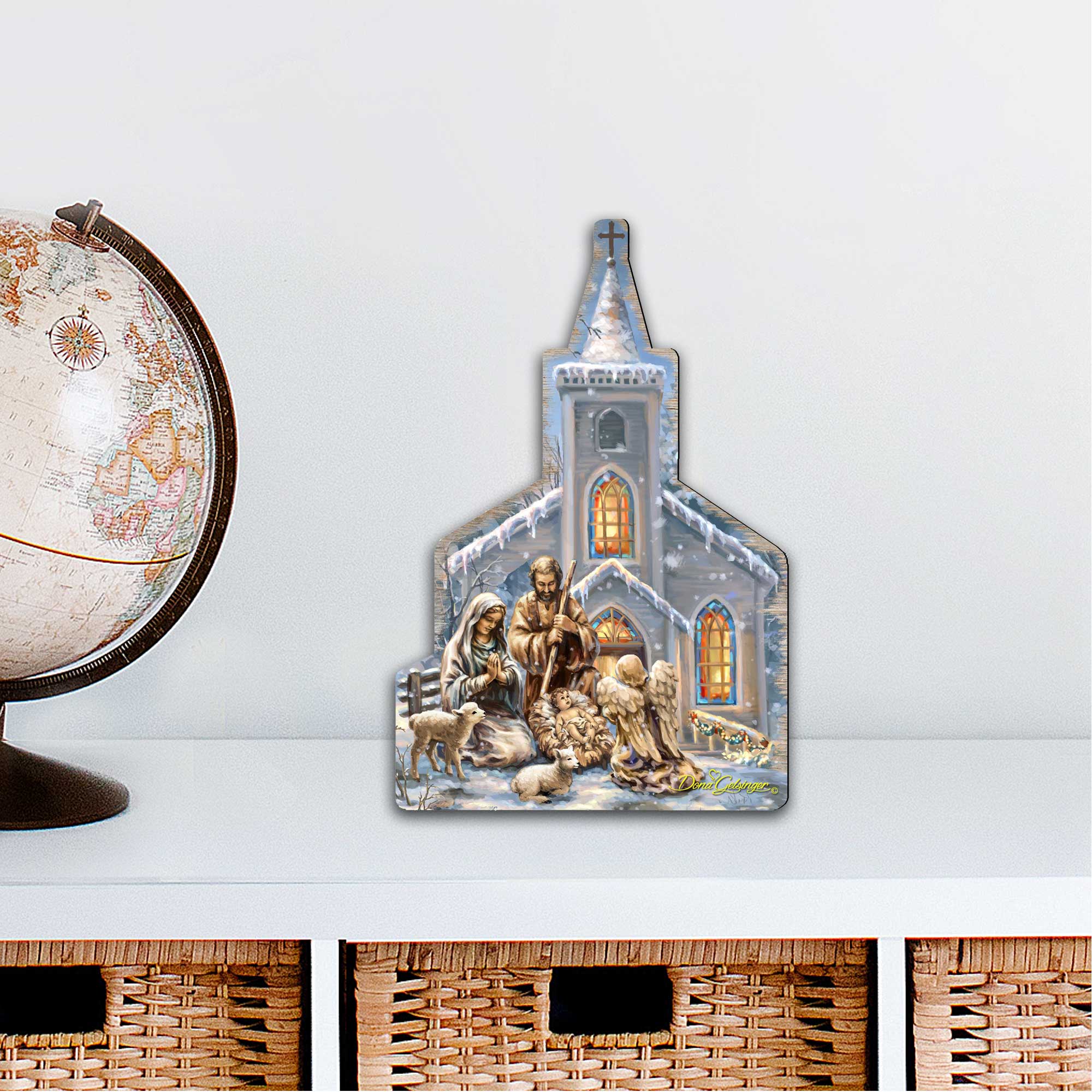 Nativity at the Chapel Nativity Door Decor by D. Gelsinger - Nativity Holiday Decor - 8121016H-1606 ‐ 12 x 9 Wall and Door Decor