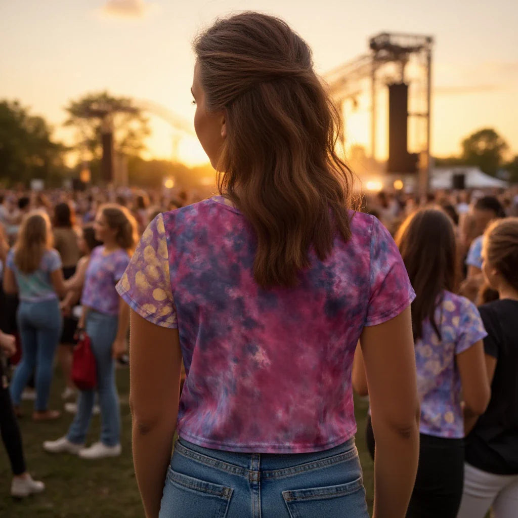 This comfort fit crop top is festival and summer party ready. Made of super soft cotton like modal poly and a little spandex for that perfect fit. Add the awesome iconic mod art piece and your day just got brighter.