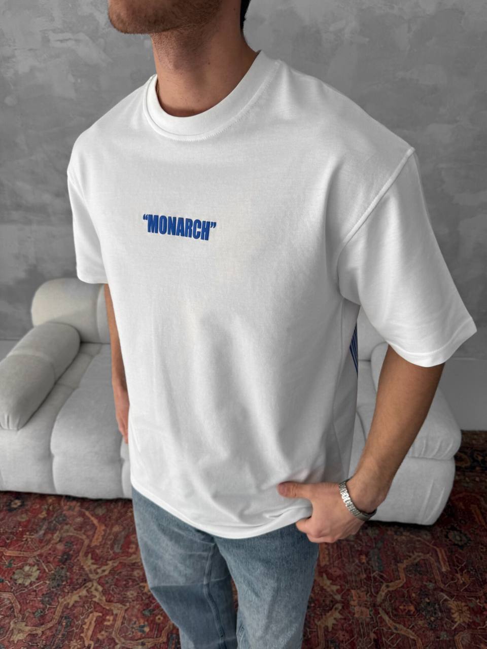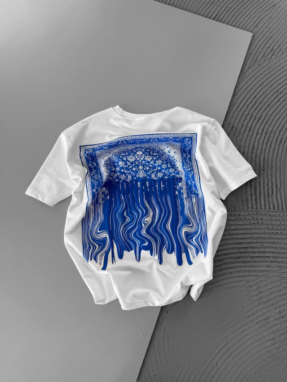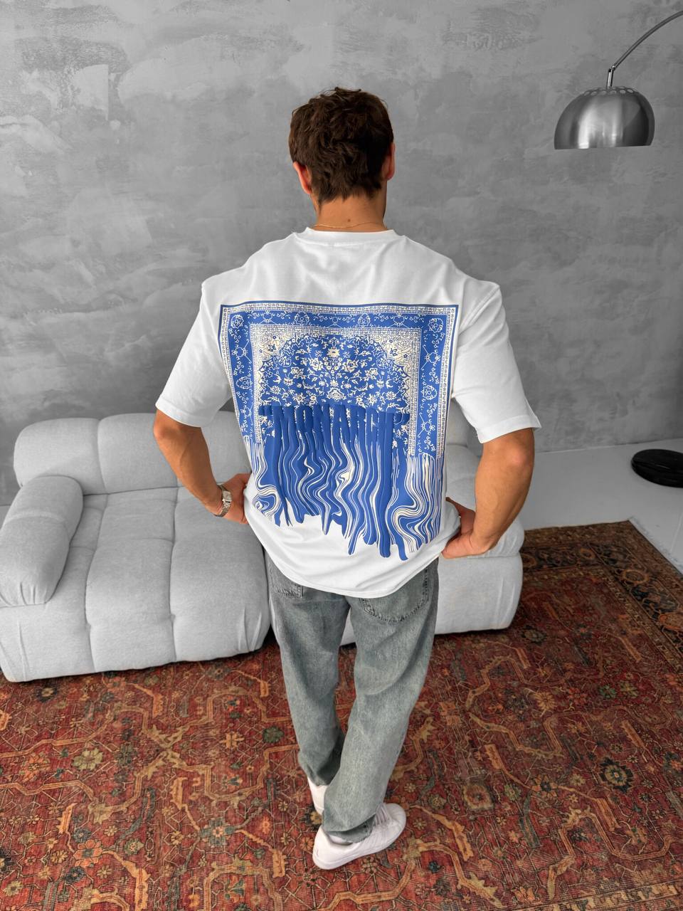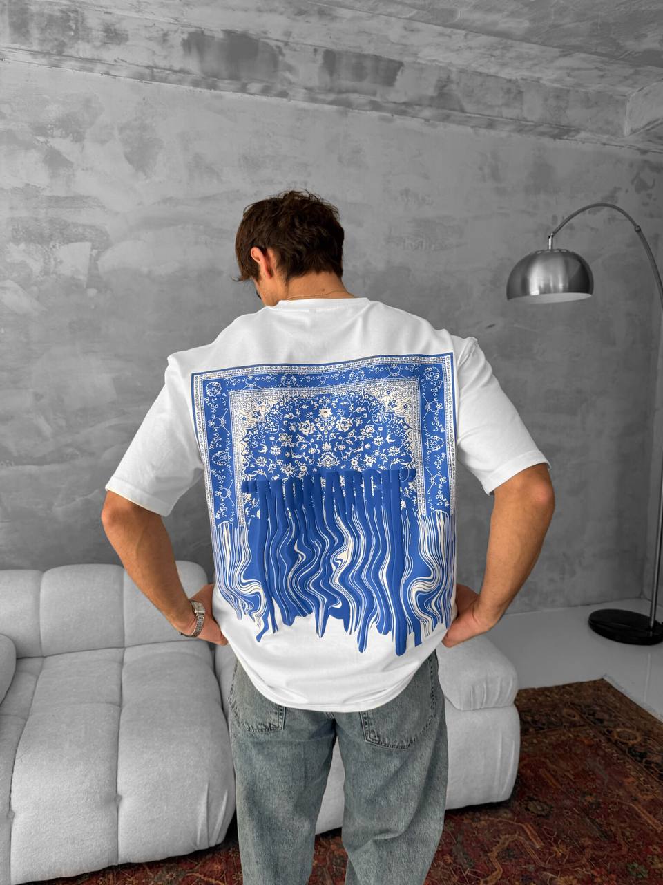 Neon Drip Cotton T-Shirt / Back Print Streetwear Tee ‐ White-blue / XL