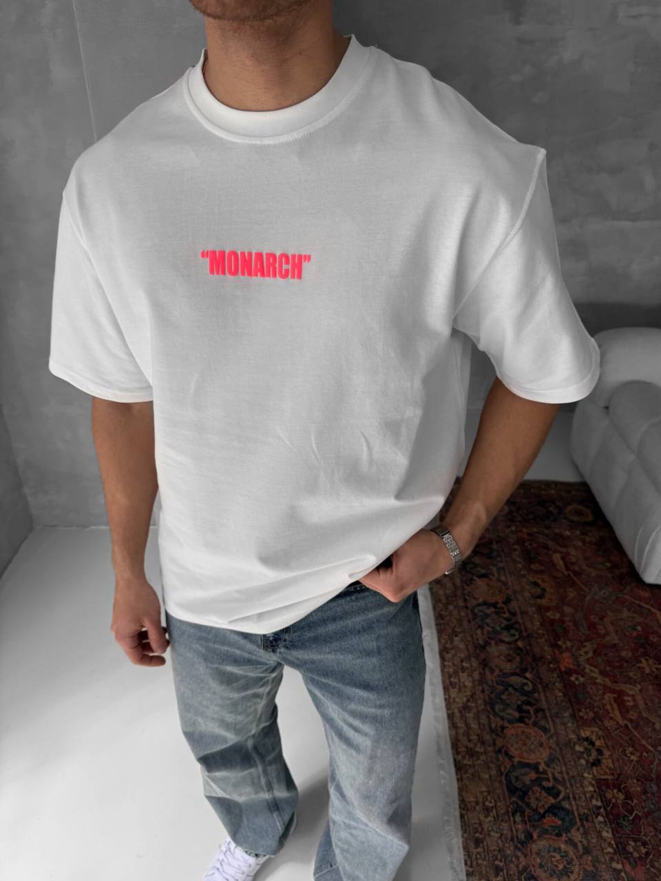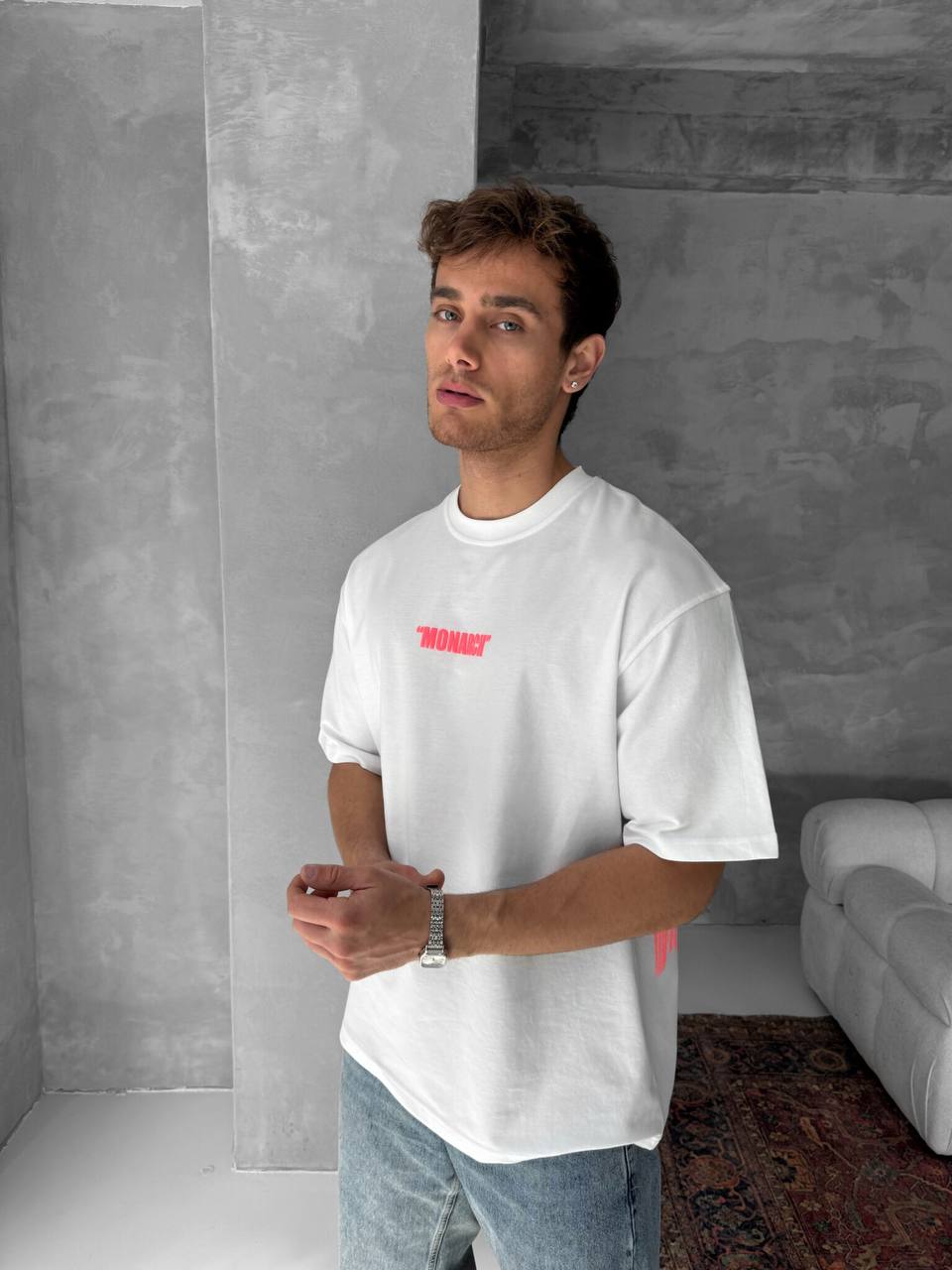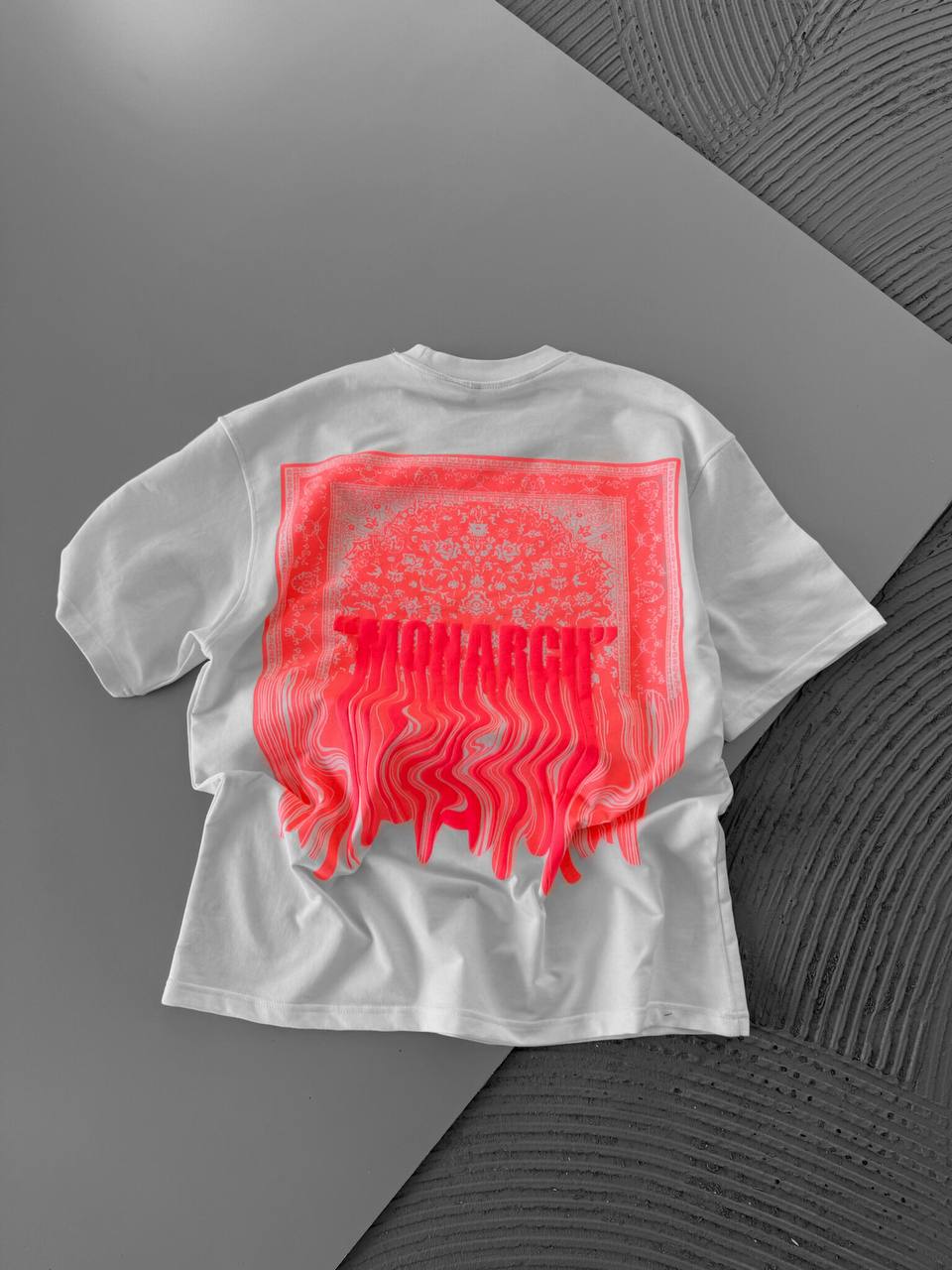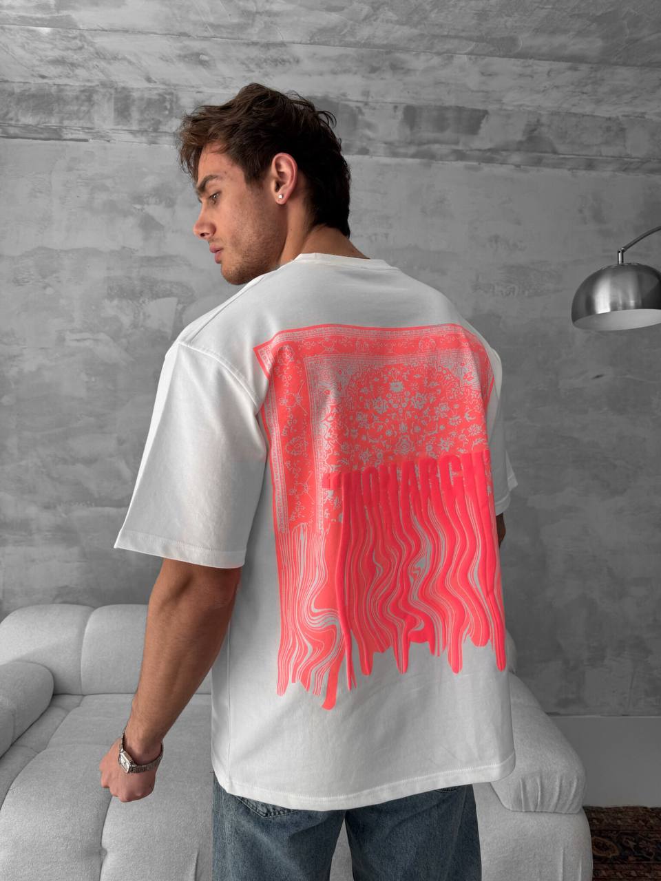 Neon Drip Cotton T-Shirt / Back Print Streetwear Tee ‐ White-Pink / XL