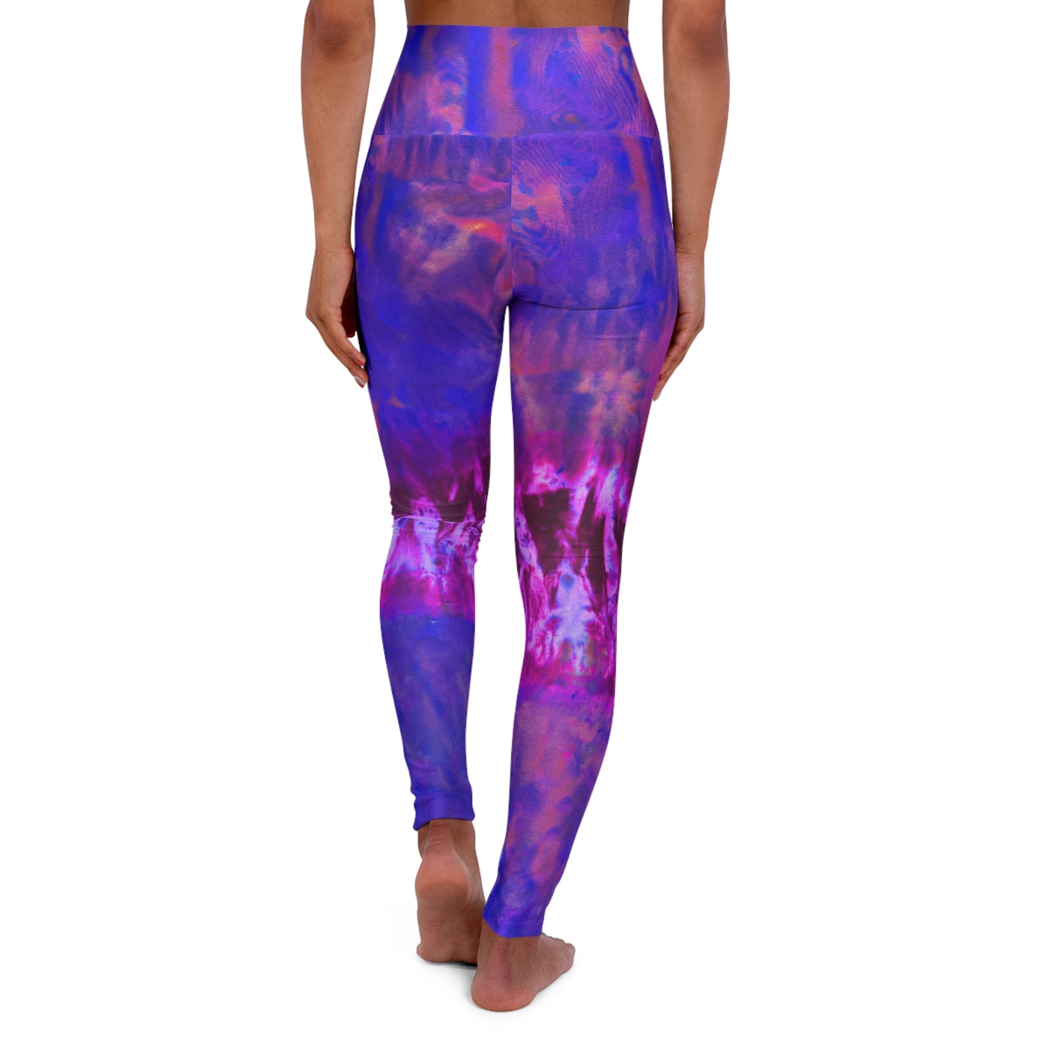 These high-waisted yoga leggings have a skinny fit and can be worn from workout to store in style and comfort. The hand-dyed print adds a pop of color to any athleisure wardrobe.