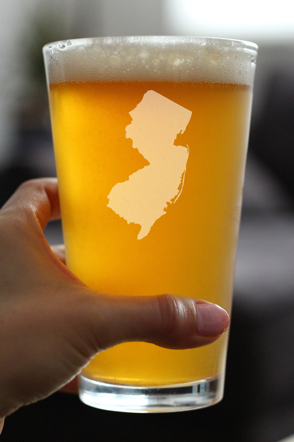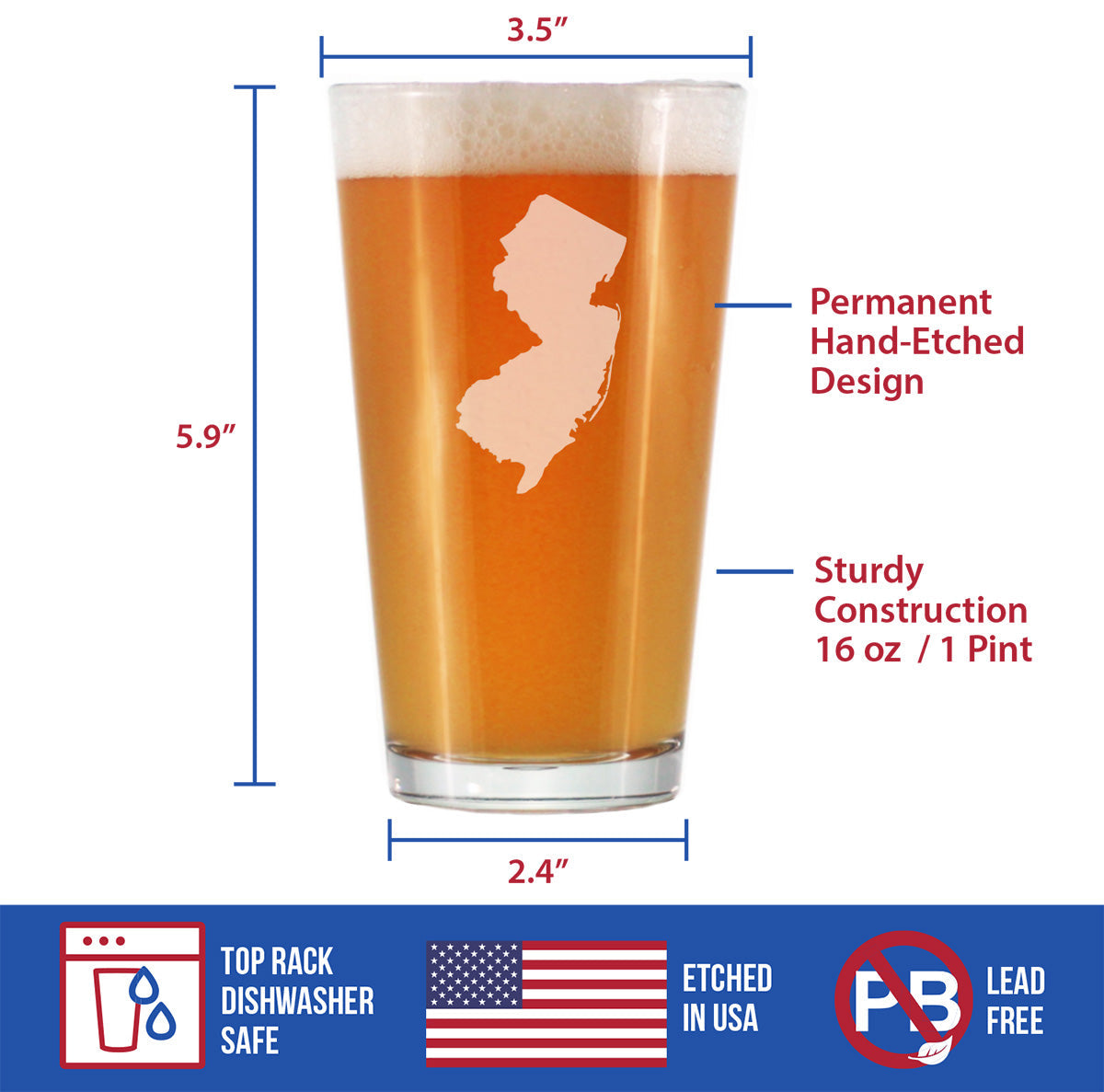 New Jersey State Outline Pint Glass for Beer - State Themed Drinking Decor and Gifts for New Jerseyan Women & Men - 16 Oz Glasses