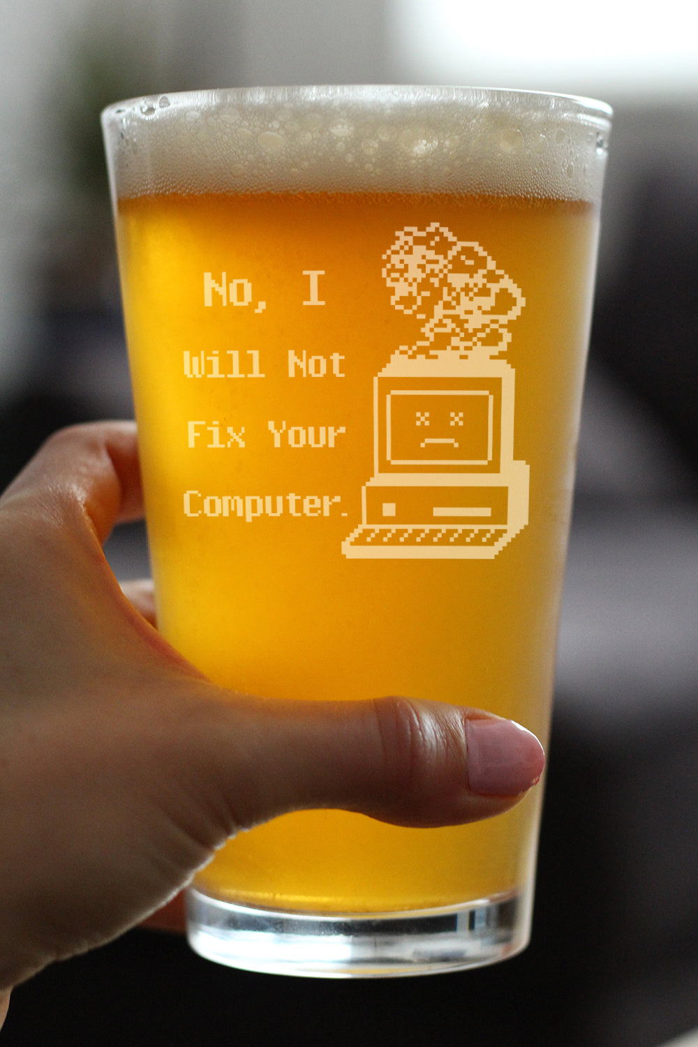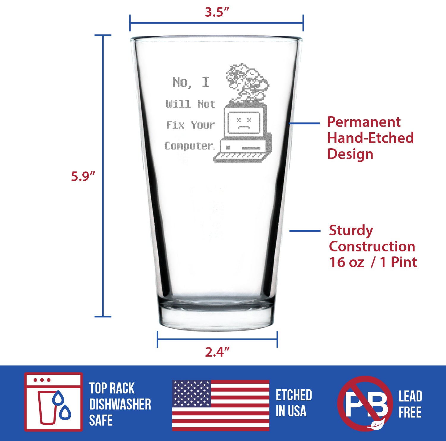 No I Will Not Fix Your Computer Engraved Pint Glass Gifts for Comp Sci Majors High Quality Pint Glasses for Beer - 16oz