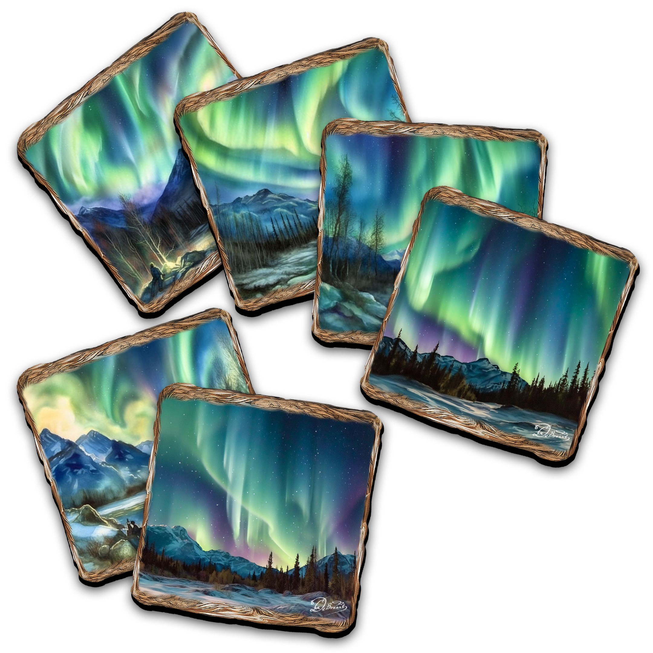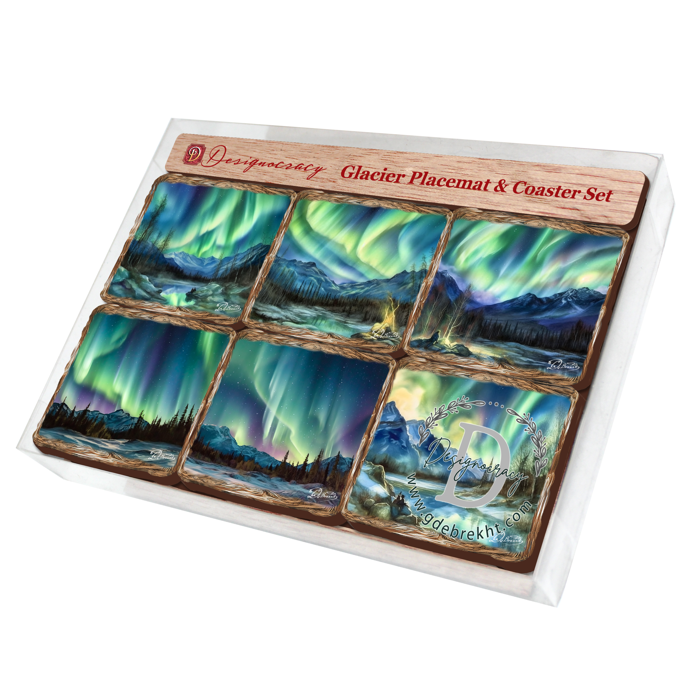 Northern Lights Wooden Cork Placemat and Coasters Gift Set of 7 by Nature Wonders Nature Wildlife Decor - 85401C-S7