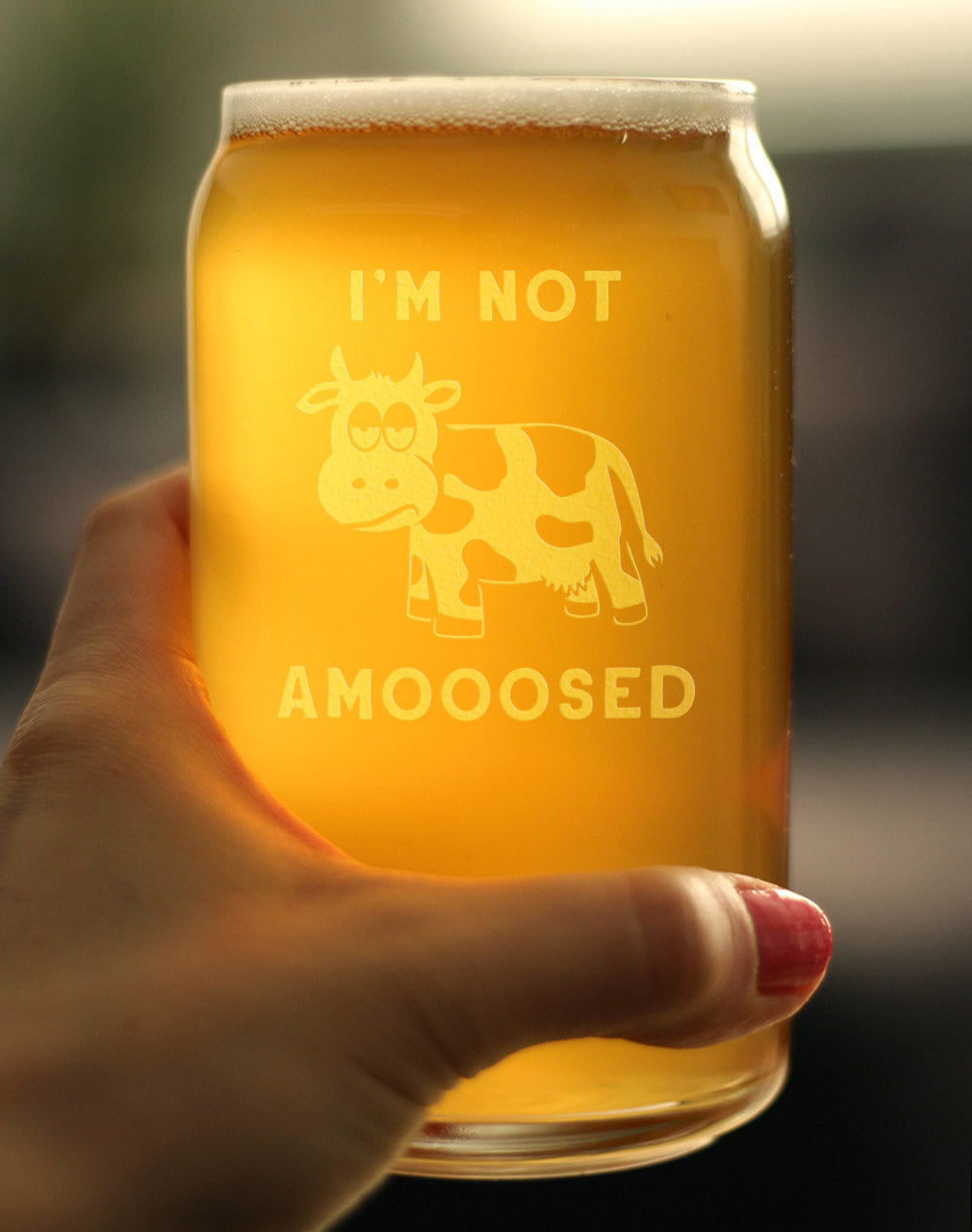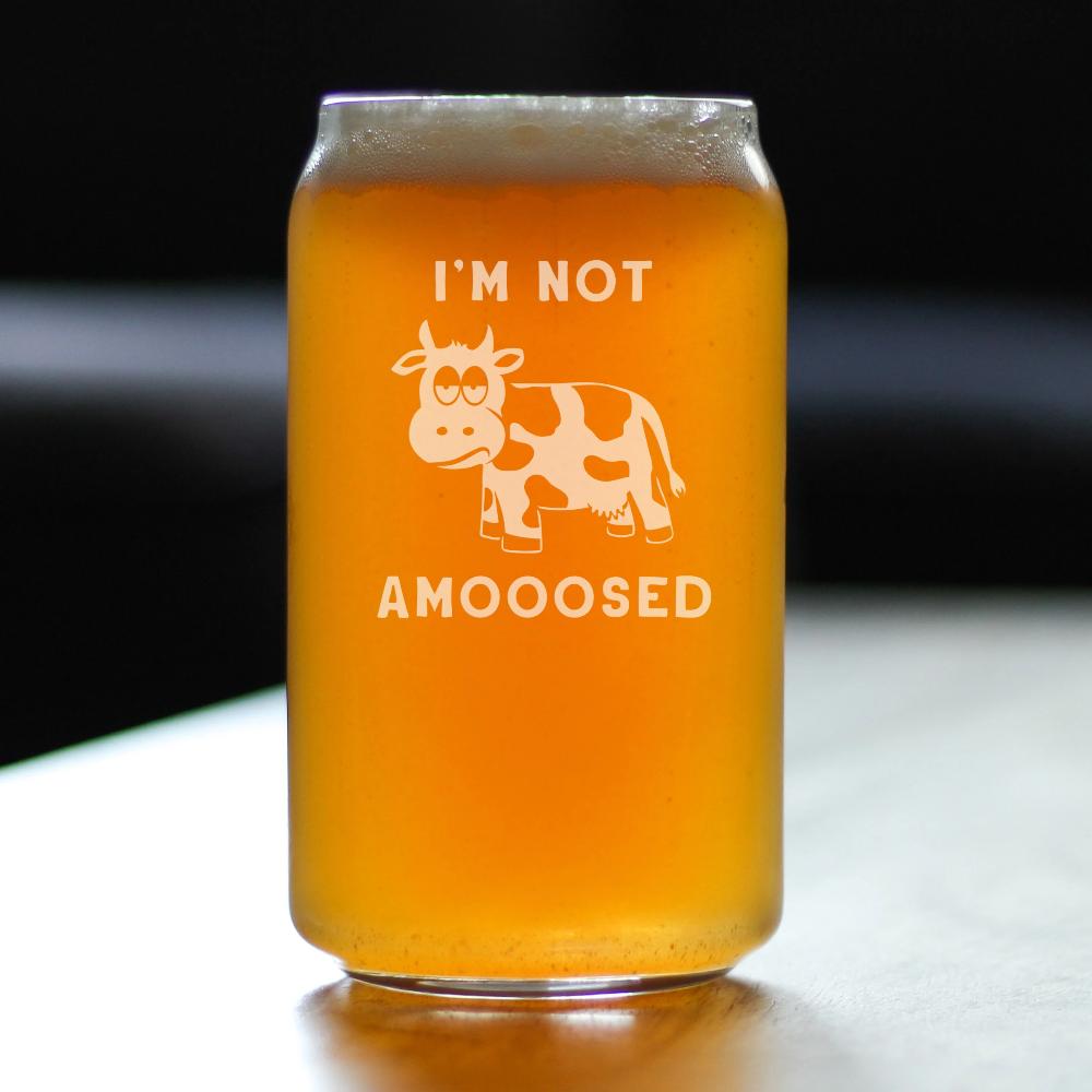 Not Amooosed - Beer Can Pint Glass for Beer - Funny Cow Gifts for Men & Women - Fun Cow Themed Decor