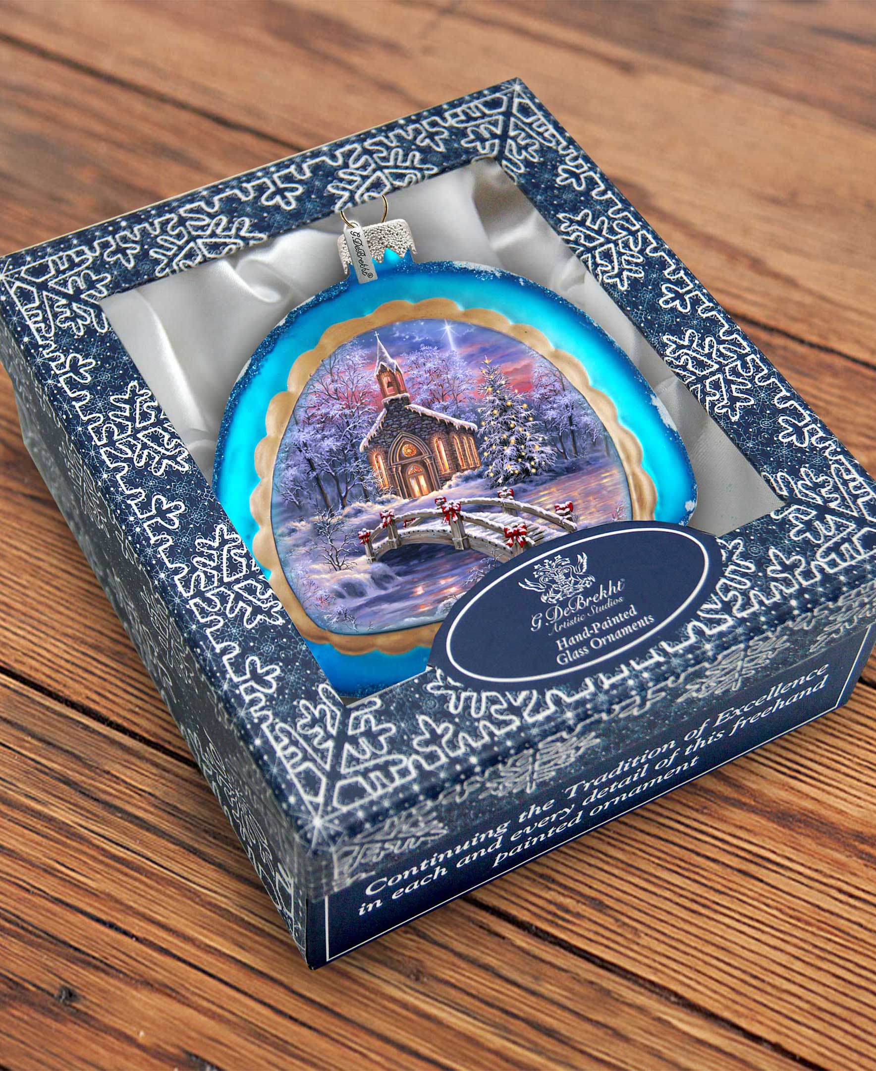 About Collection: This "Holiday Splendor Glass Ornaments Collection has been inspired by old world-Eastern European families, who for almost 200 years had painted beautiful miniature lacquered paper-m?›ch?? boxes inlaid with mother of pear. It took years of perfecting this technique to establish this new and innovative form of painting that we now proudly present in our exclusive G. DeBrekht Glass ornaments. As in the old days, they are made from 1.5 mm hand-blown Mercury Glass, silver powdered from the inside and then sandblasted from the outside. Combining colors and multi-layer painting techniques create a deep,ayer painting technique creates a strong, iridescent effect. We take pride in perfecting every piece by adding touches of gold, finishing them with a lovely satin ribbon, and presenting them in a luxurious satin-lined box. Hand-made in the USA, every piece is unique- and will be passed on to future generations to cherish.