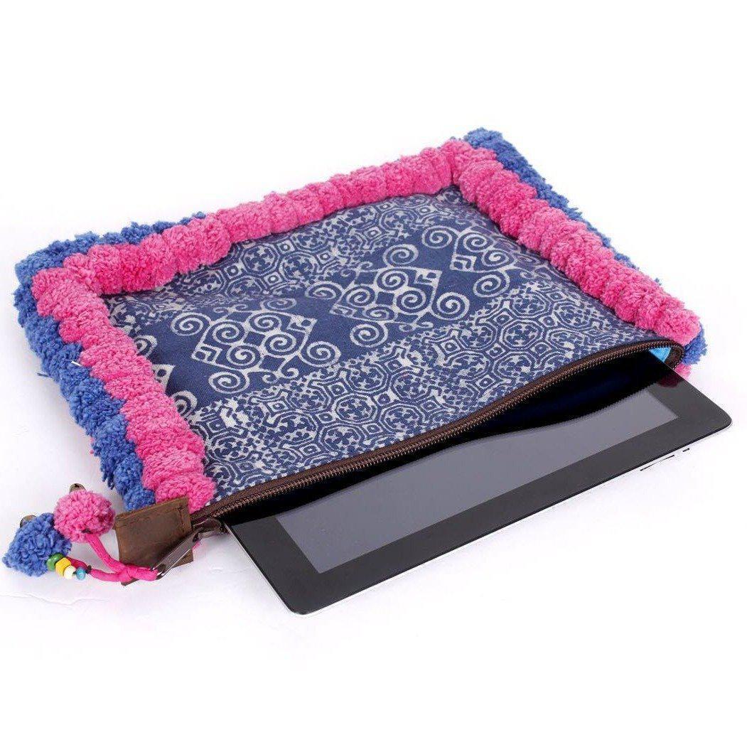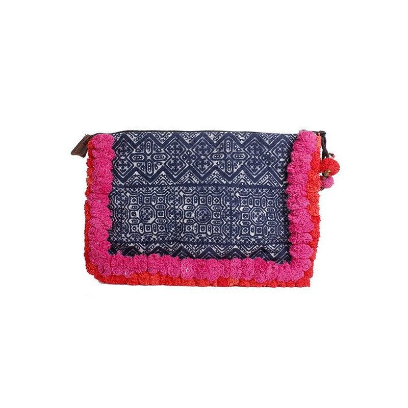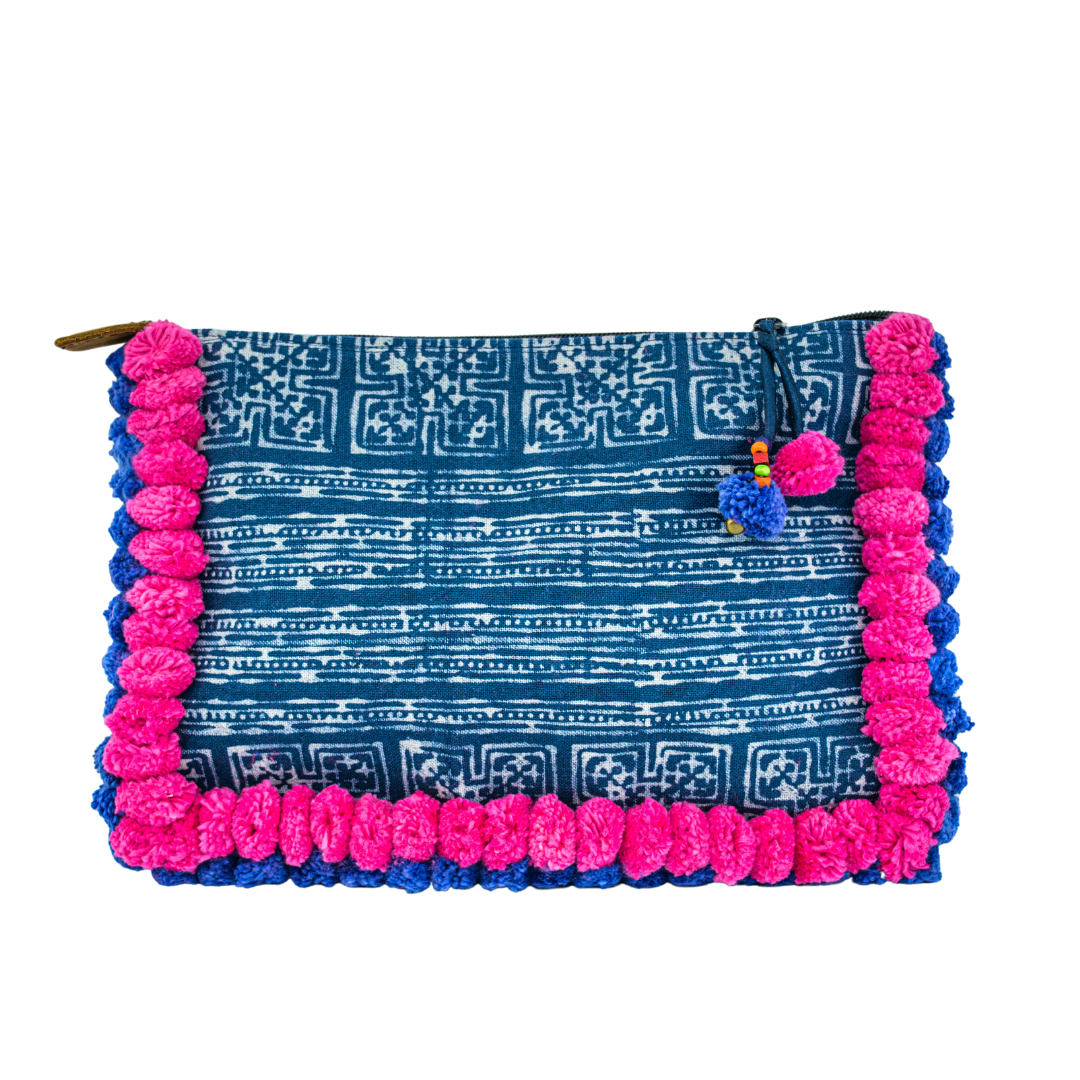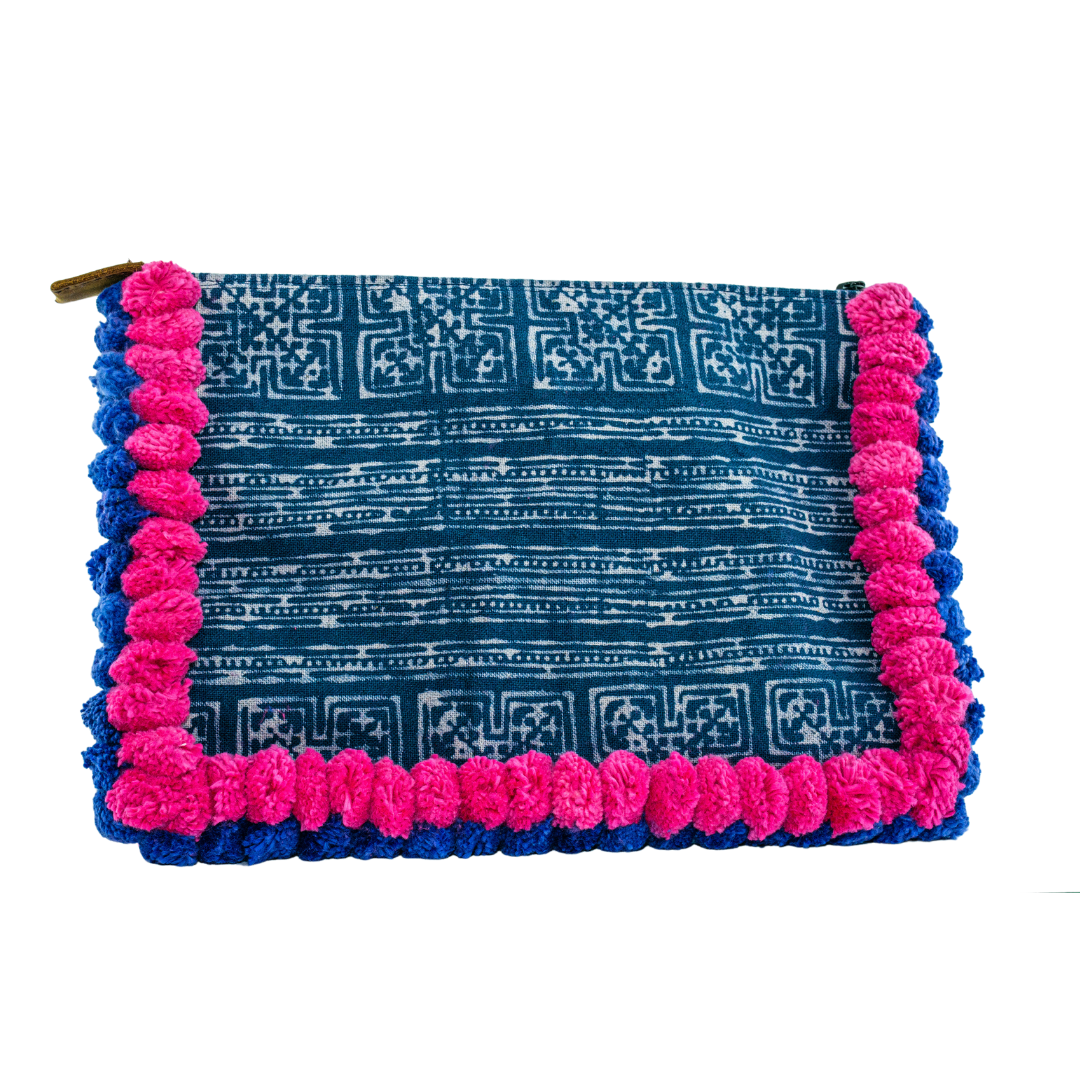 Oasis Batik PomPom iPad Clutch - Thailand ‐ Pink & Blue
