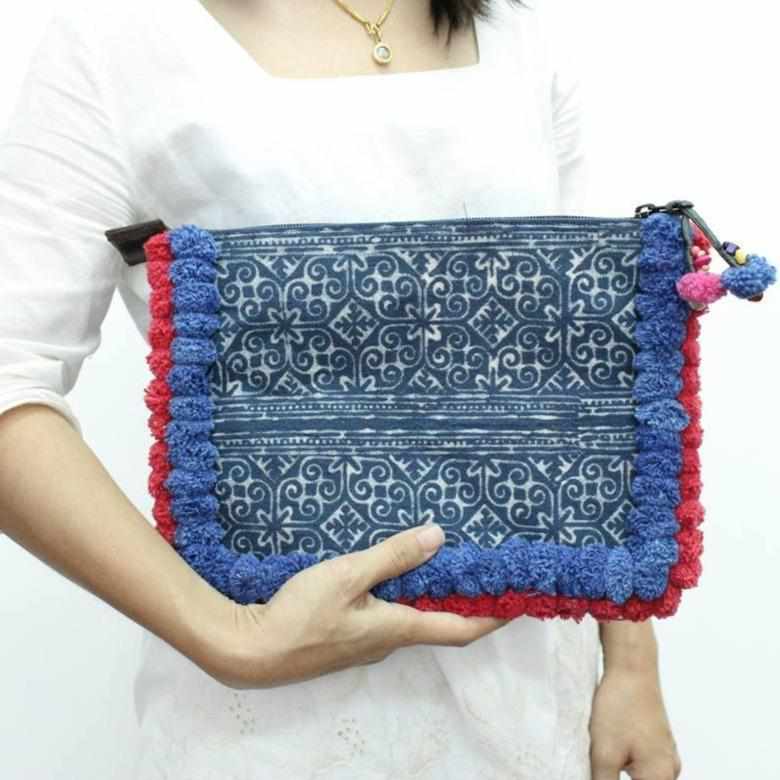 Oasis Batik PomPom iPad Clutch - Thailand ‐ Blue & Red