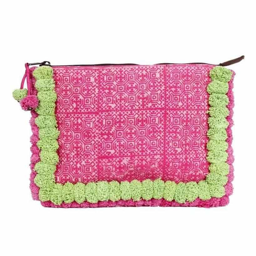Oasis Batik PomPom iPad Clutch - Thailand ‐ Pink & Green