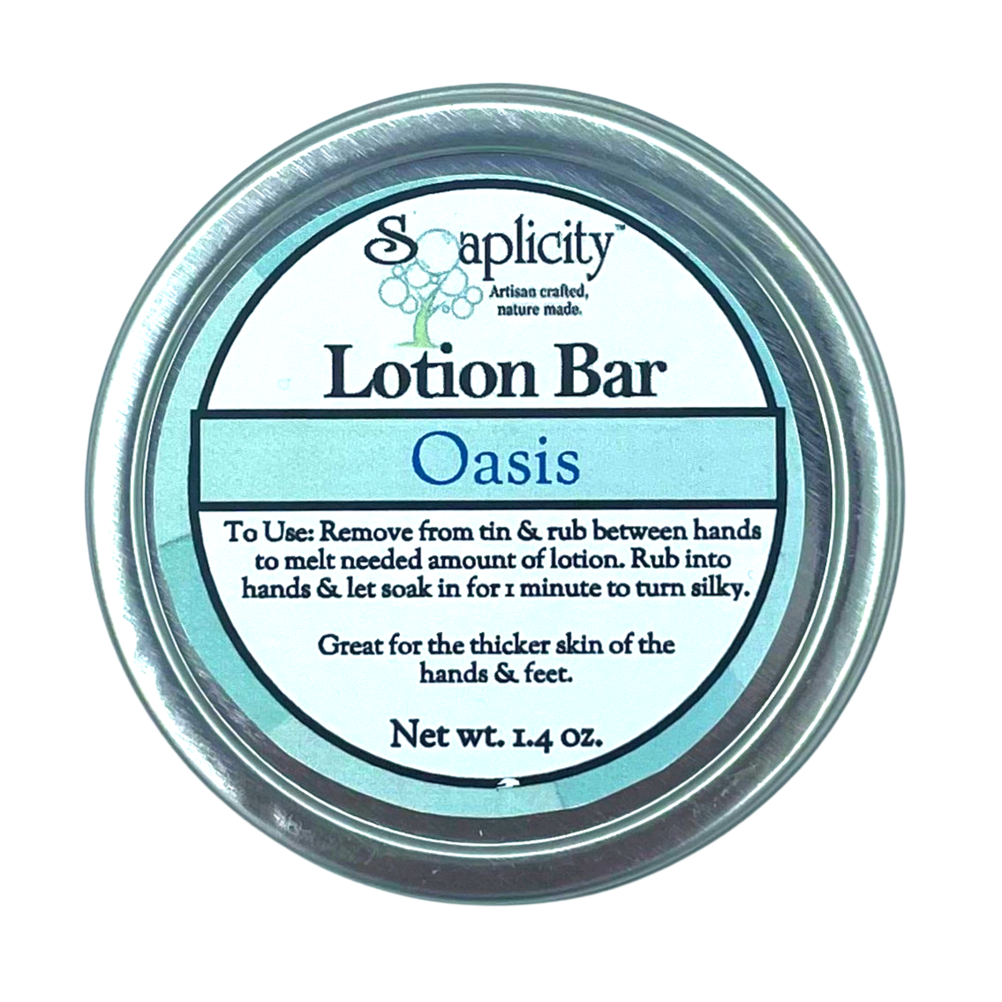 The Oasis Lotion Bar is the perfect companion to our Oasis Soap Bar, and uniquely designed to be carried in a pocket or purse for all-day spot application. It is specially formulated with Neem, Evening Primrose, and Kukui Oils to penetrate deep into the dermal layers to hydrate skin quickly to soothe angry skin. Key essential oils of tea tree and frankincense tie together our proprietary blend for a pleasing earthy scent and added relief.