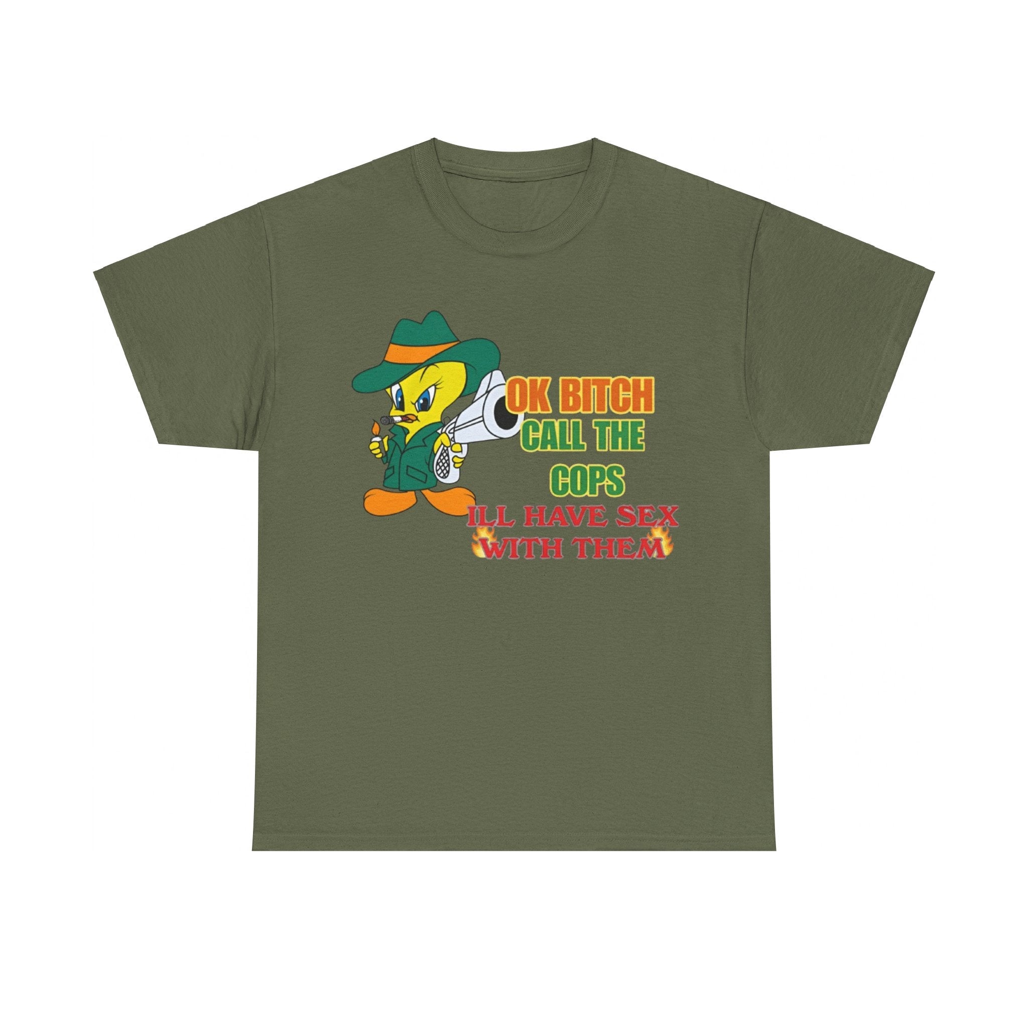 Okay b***h call the cops ill have s*x with them Funny T-shirt ‐ Military Green / S