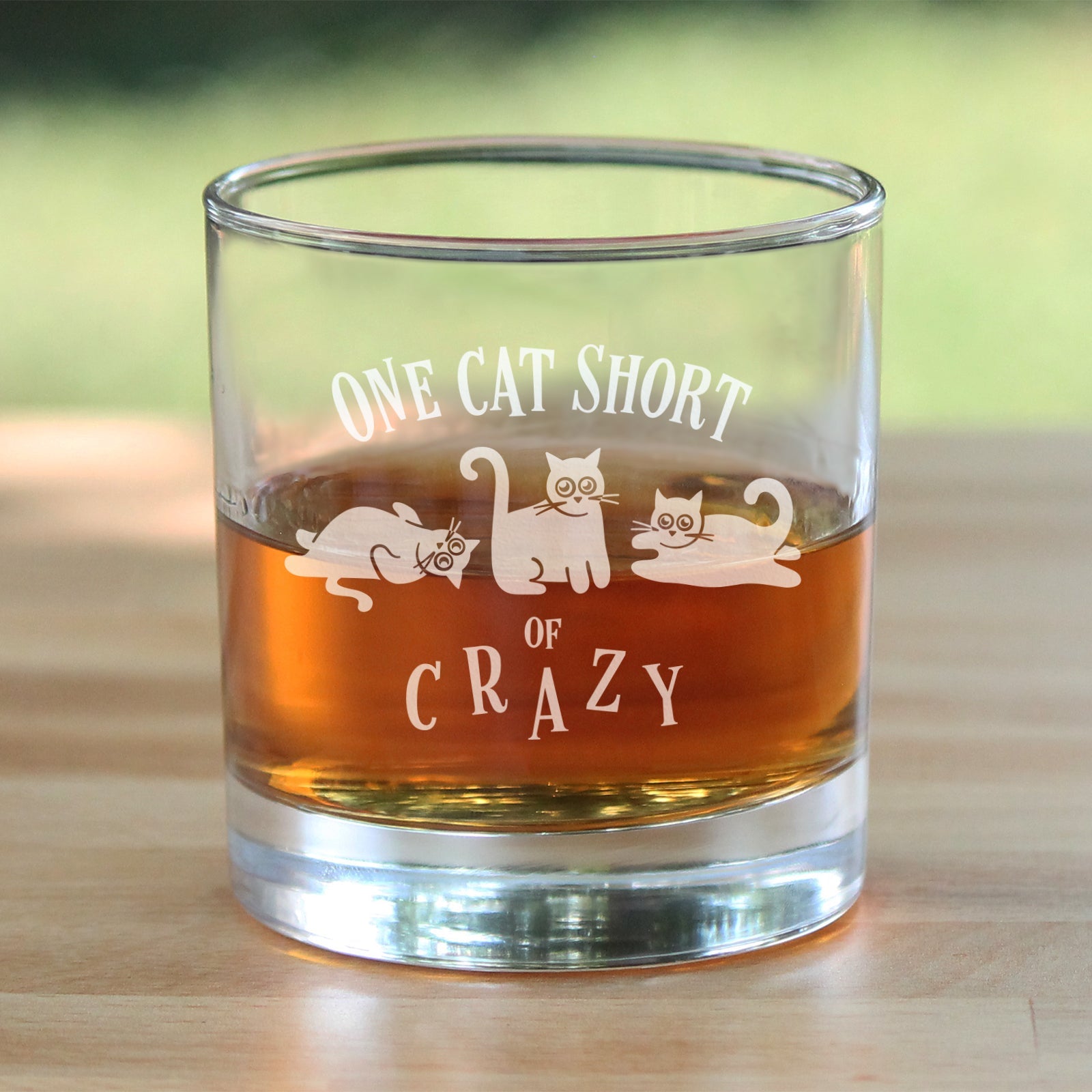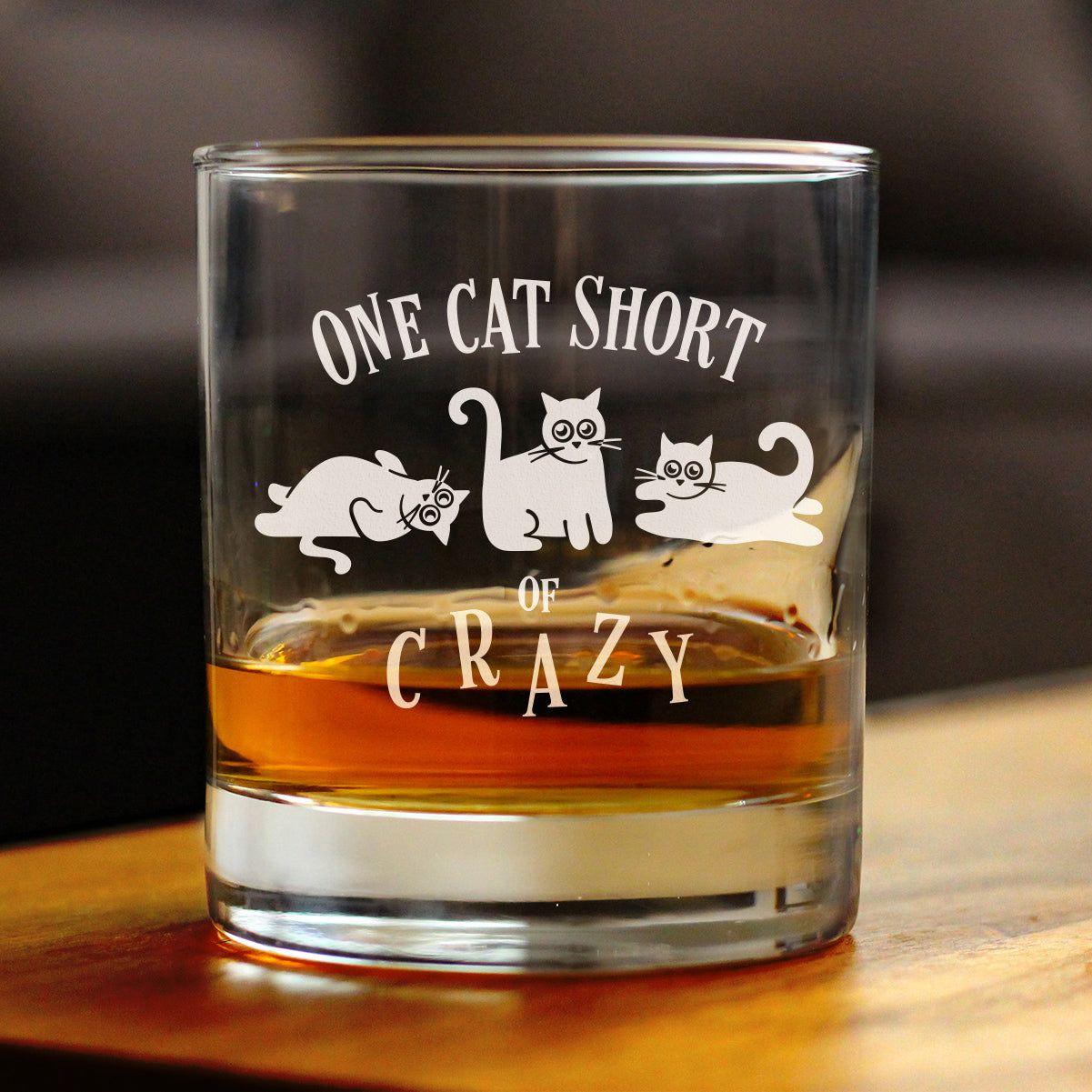 One Cat Short of Crazy - Whiskey Rocks Glass Gift - Funny Cat Gifts for Women and Men - 10.25 oz Glasses