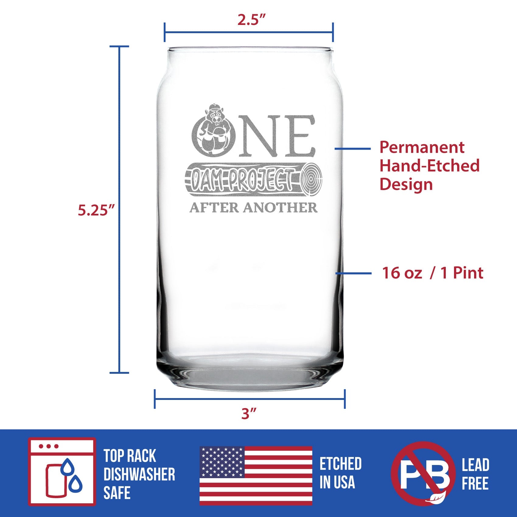 One Dam Project - Beer Can Pint Glass - Funny Handyman Gifts for Construction Workers - 16 oz Glasses