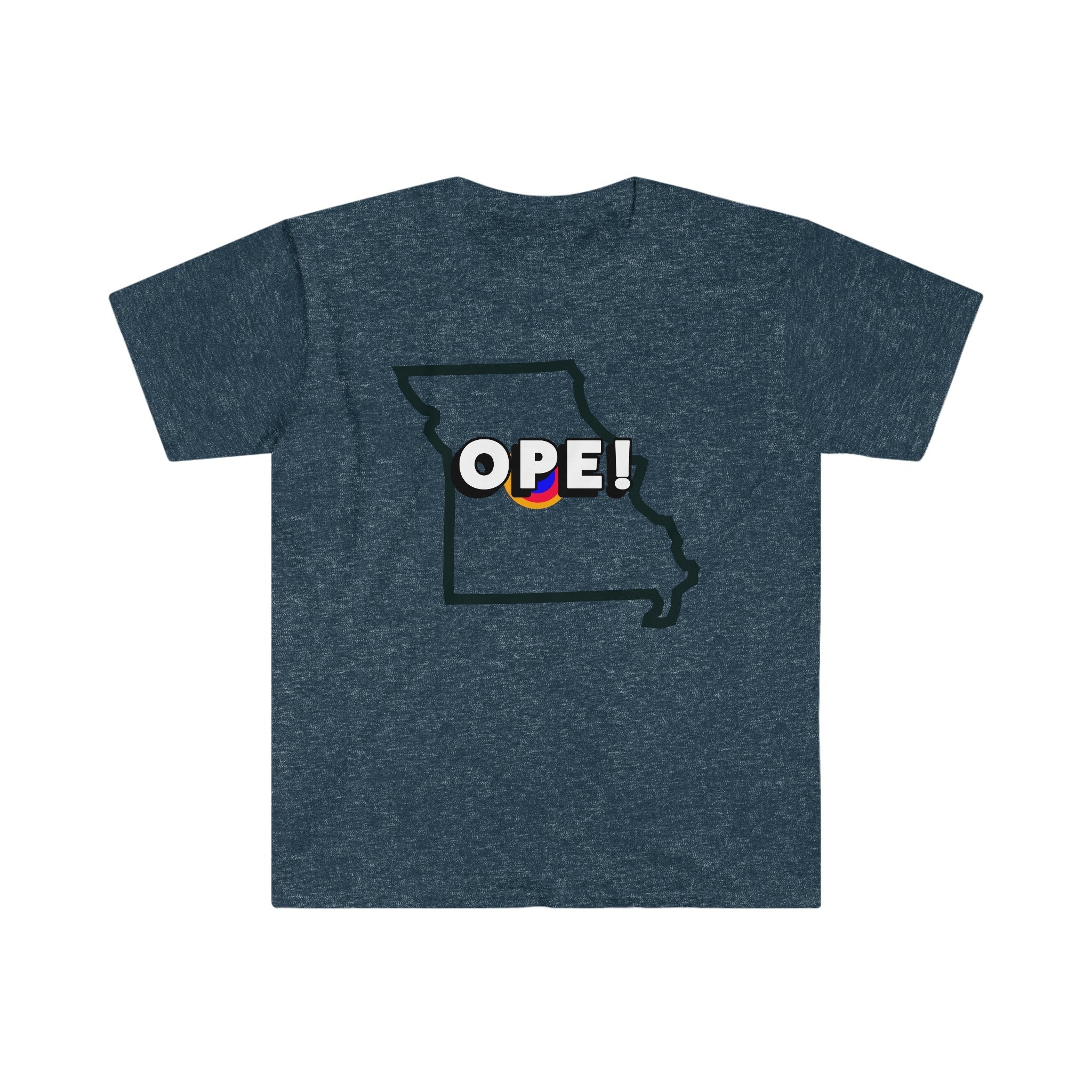 So whether you're a proud Missourian, a fan of the Midwest, or just love unique and fun t-shirts, our Missouri "ope" tee is a must-have for your wardrobe. Get yours today and start spreading the "ope" love!