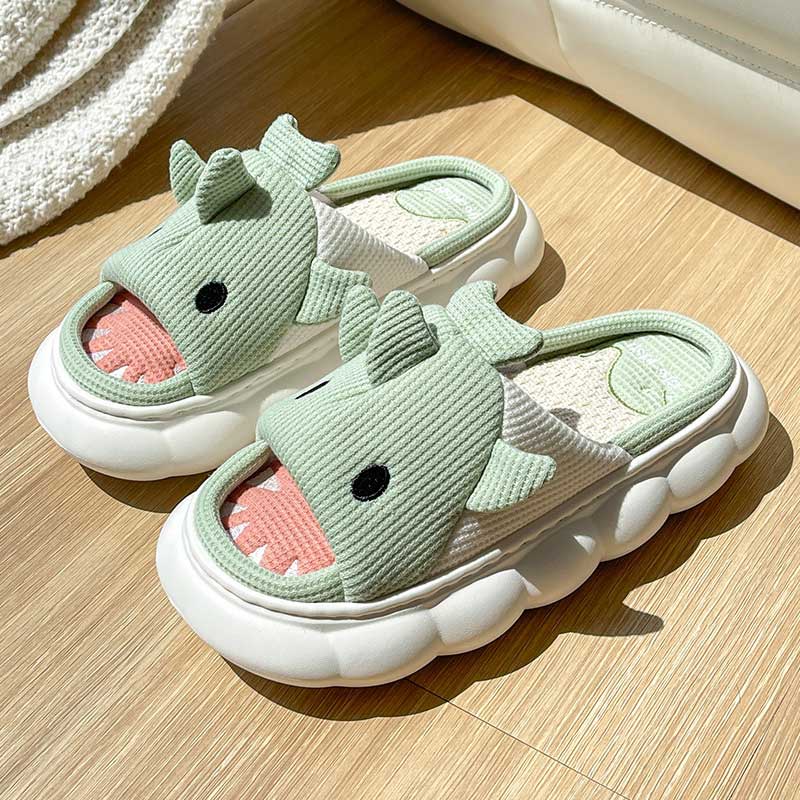 Original Thick Sole Shark Slippers(Adults) | ZAKAPOP ‐ Green&White / 5.5-6.5 Women/ 4-5 Men