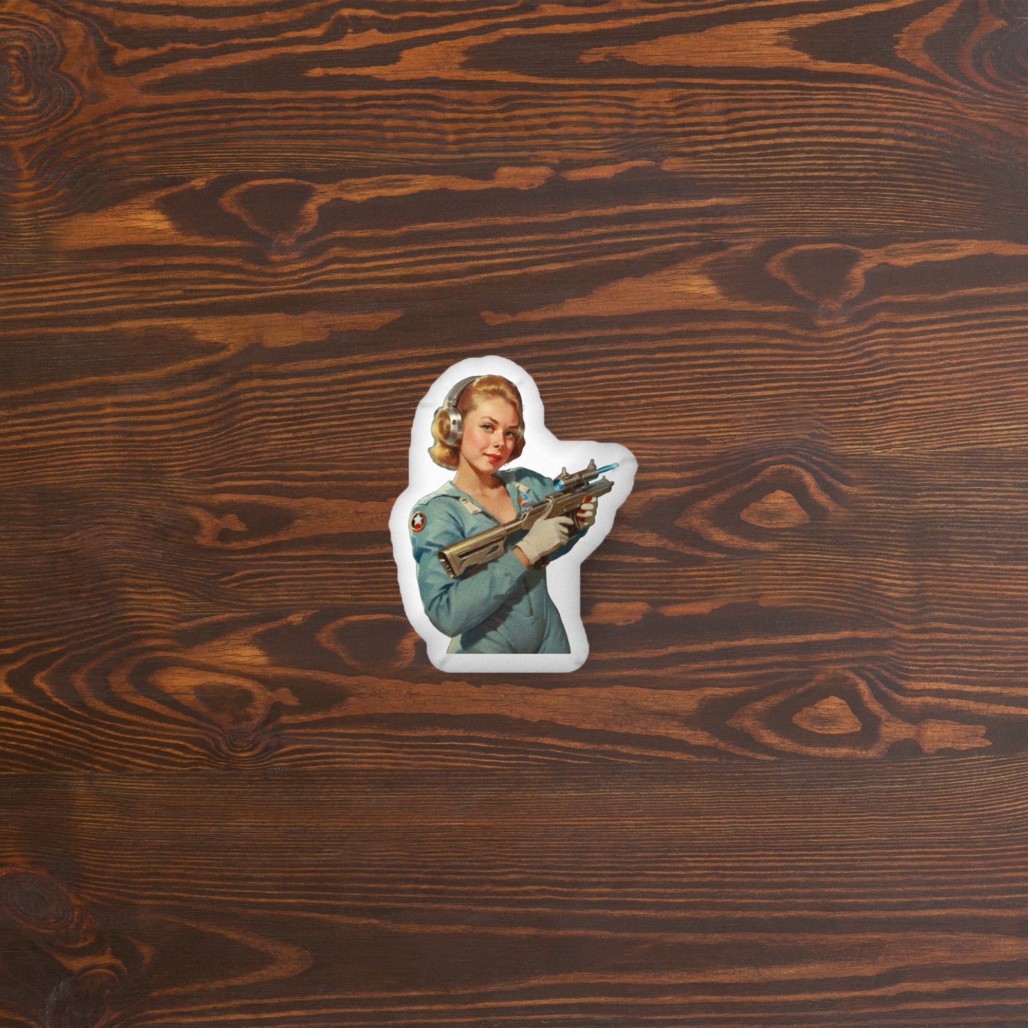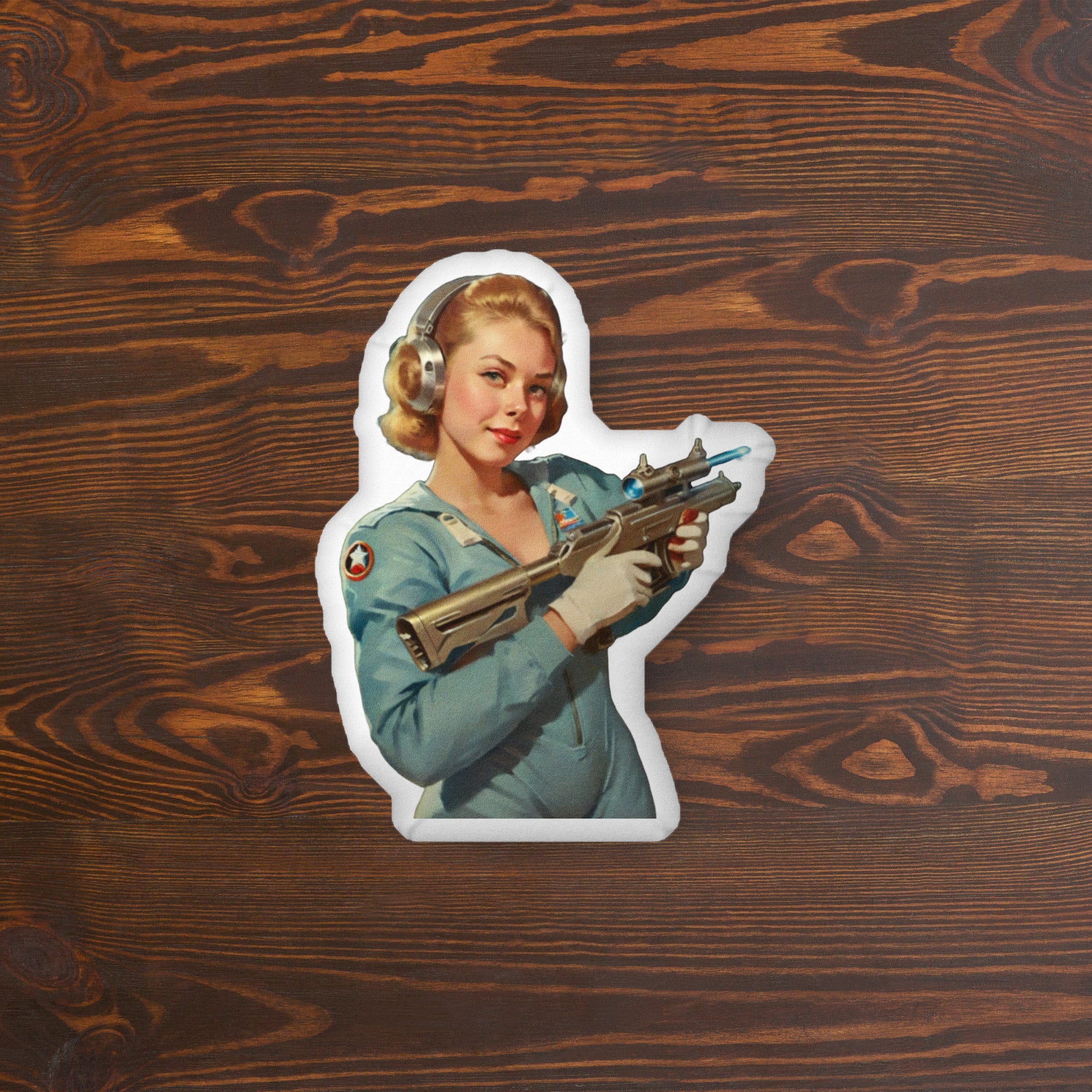 Strap in and prepare for an intergalactic journey to the land of comfort with this Daniella Space Girl Pillow! Featuring Daniella in all her 1950’s space queen glory, this custom-shaped pillow is your perfect companion for those movie marathons, naps, or late-night cosmic debates. Whether you're discussing the future of liberty or just lounging, Daniella's retro charm will keep your couch cool and your dreams out of this world.