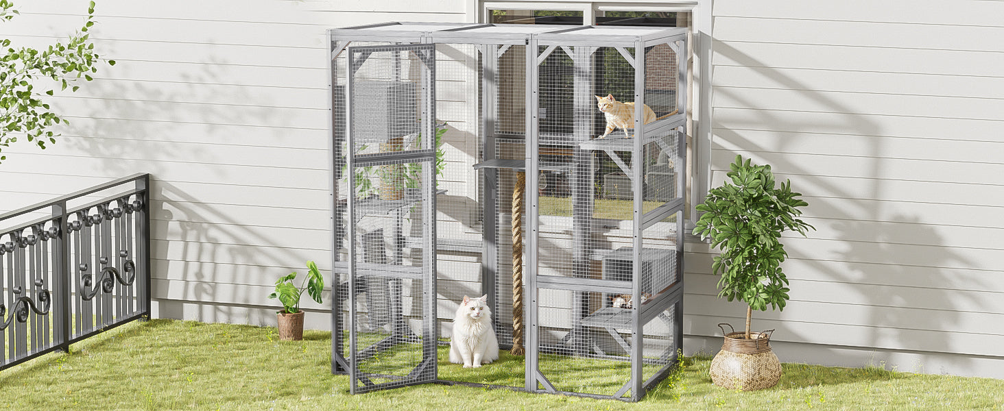 - Cozy Sleep Areas - The cat enclosure includes two comfortable sleeping houses, providing safe and private spots for your cats to rest and sleep. These enclosed spaces are perfect for cats who seek a cozy retreat, especially when they want to relax or nap away from other pets.