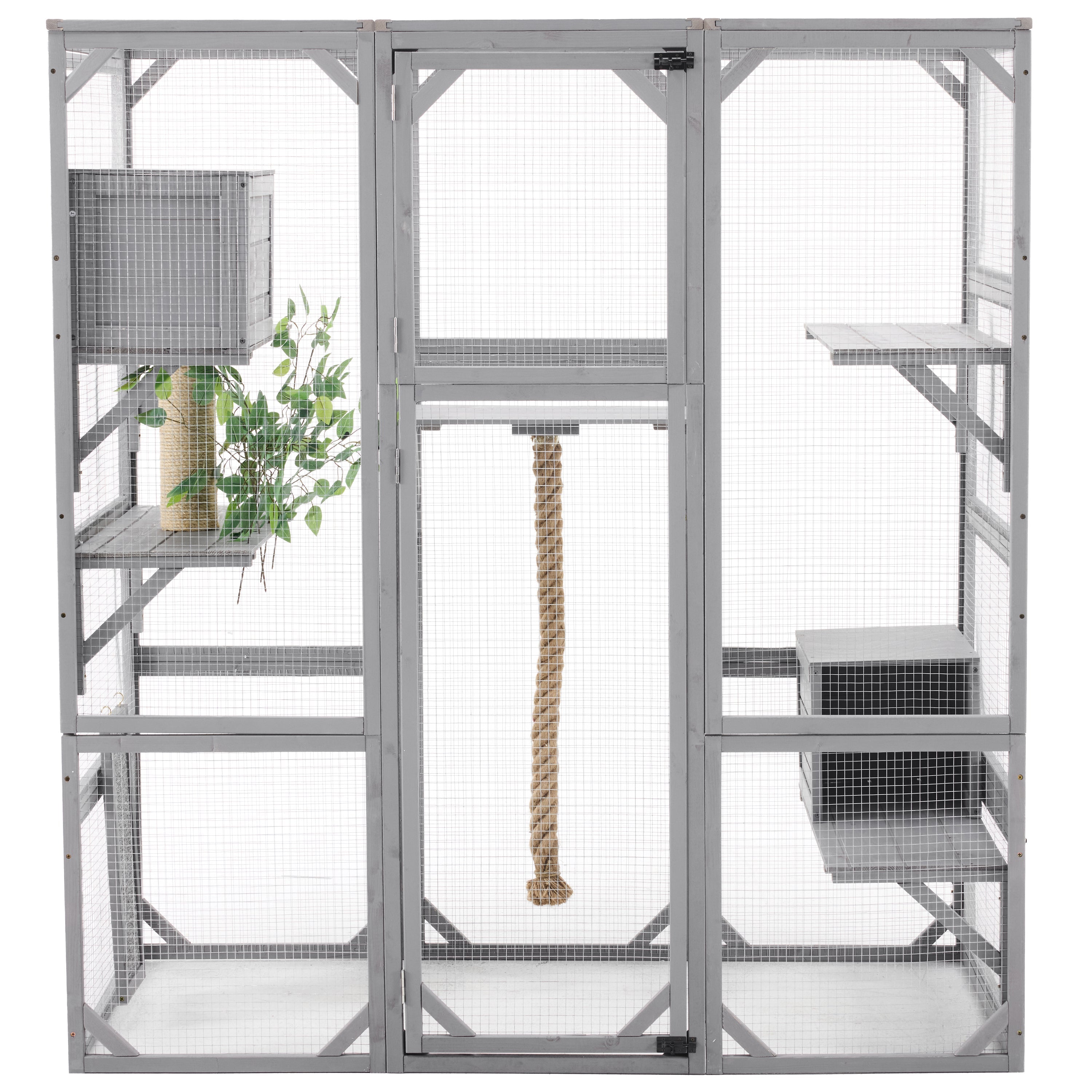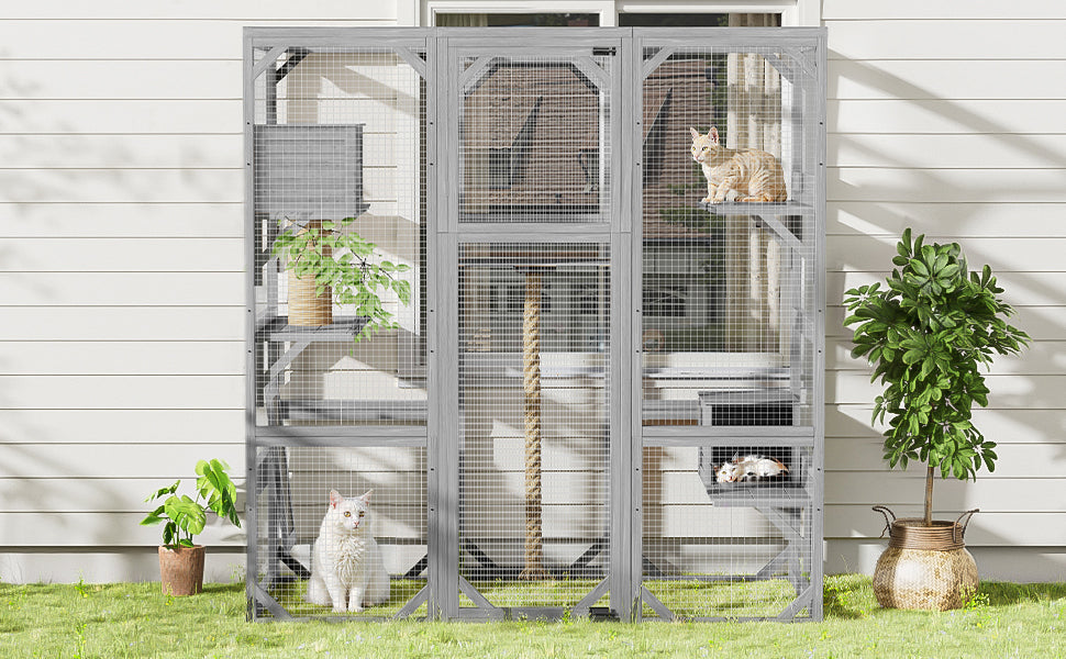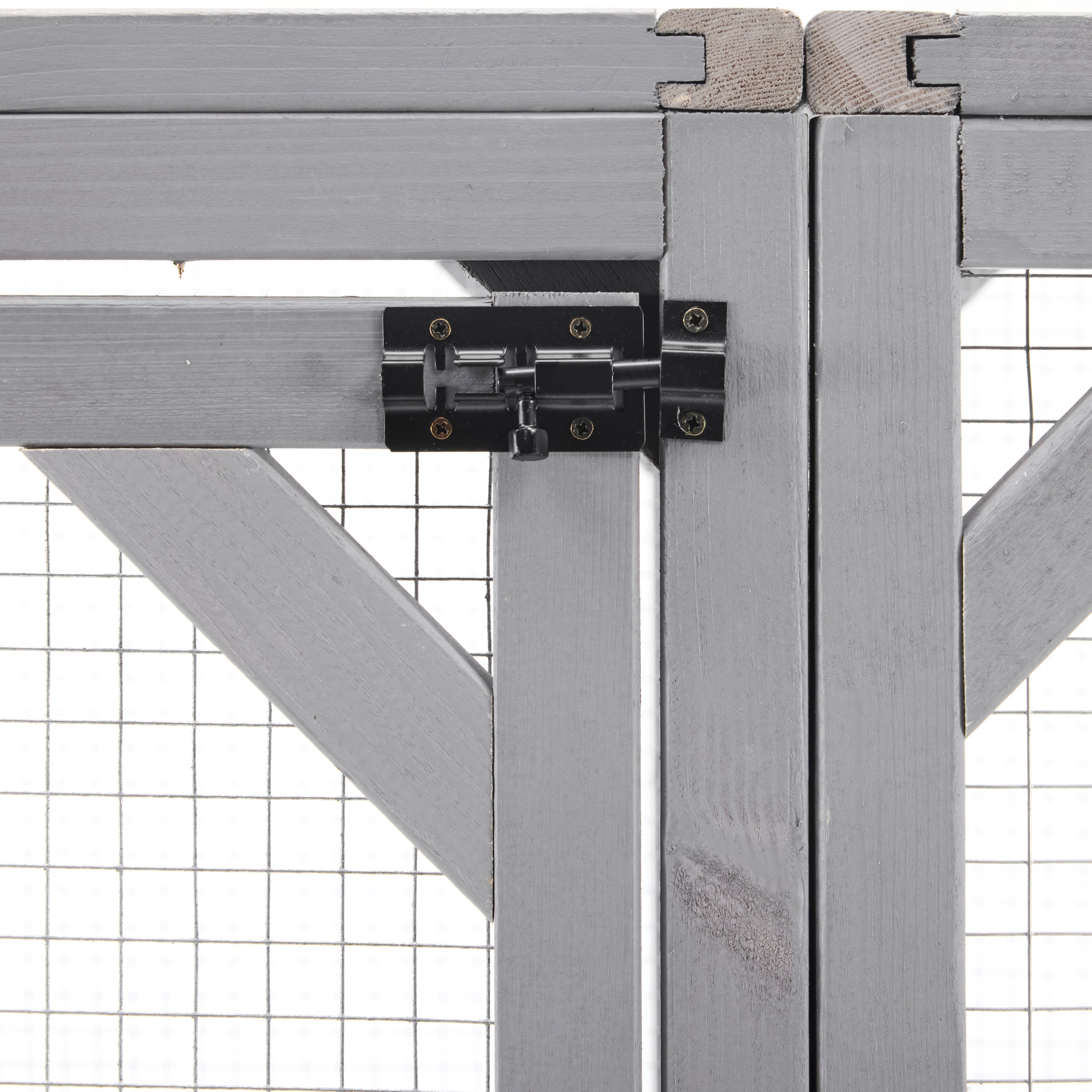 - Durable and Safe Construction - Made from high-quality pine wood and reinforced with galvanized wire mesh, this outdoor cat enclosure is built to withstand the elements while providing a safe and secure environment for your feline friends. The sturdy structure ensures that the cage remains stable even during vigorous play.