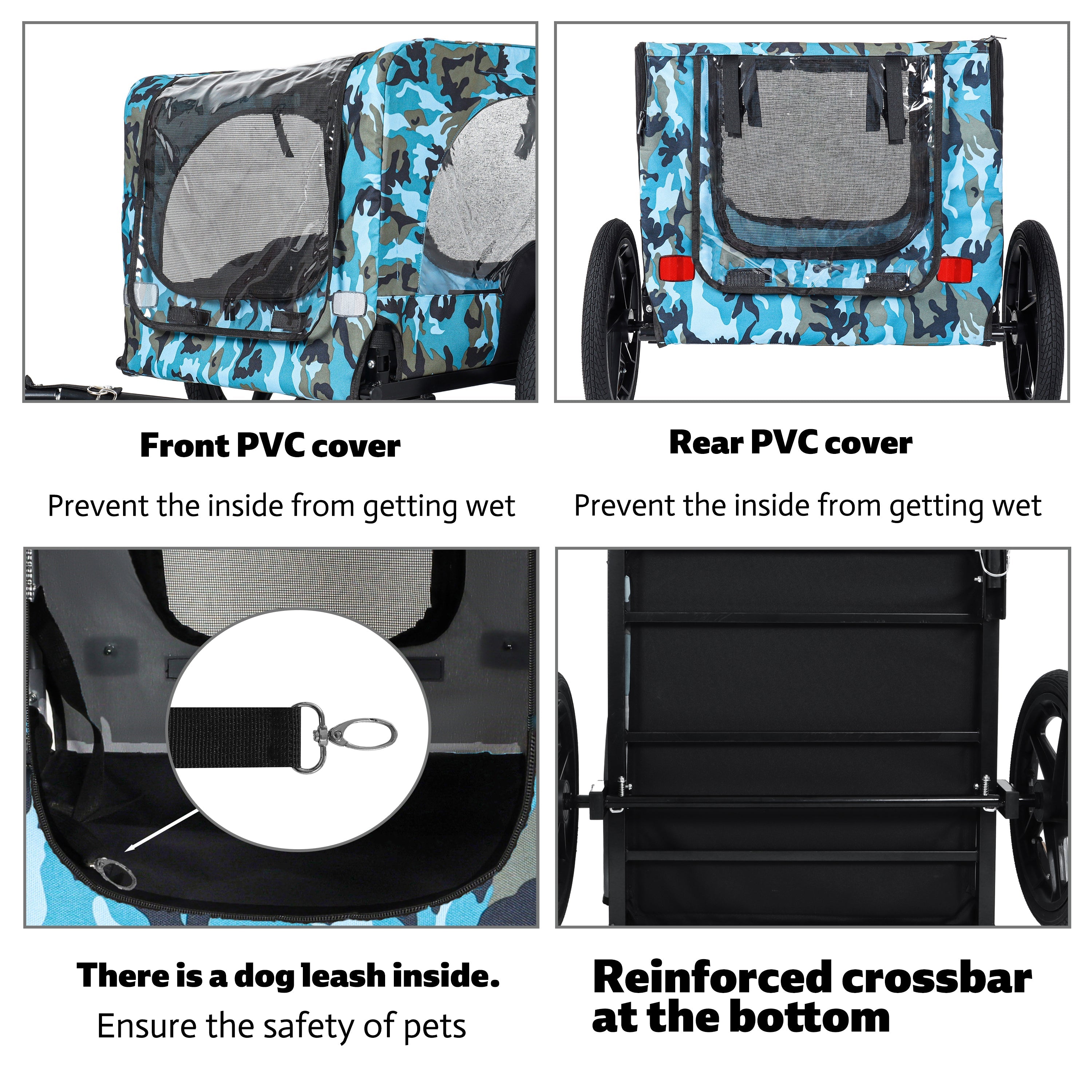 - All-Weather Protection & Ventilation: Equipped with a waterproof front curtain to block rain and wind, paired with fine mesh side panels that keep insects out while promoting airflow. Your pet stays dry, cool, and engaged with the surroundings—no compromises on comfort or safety.