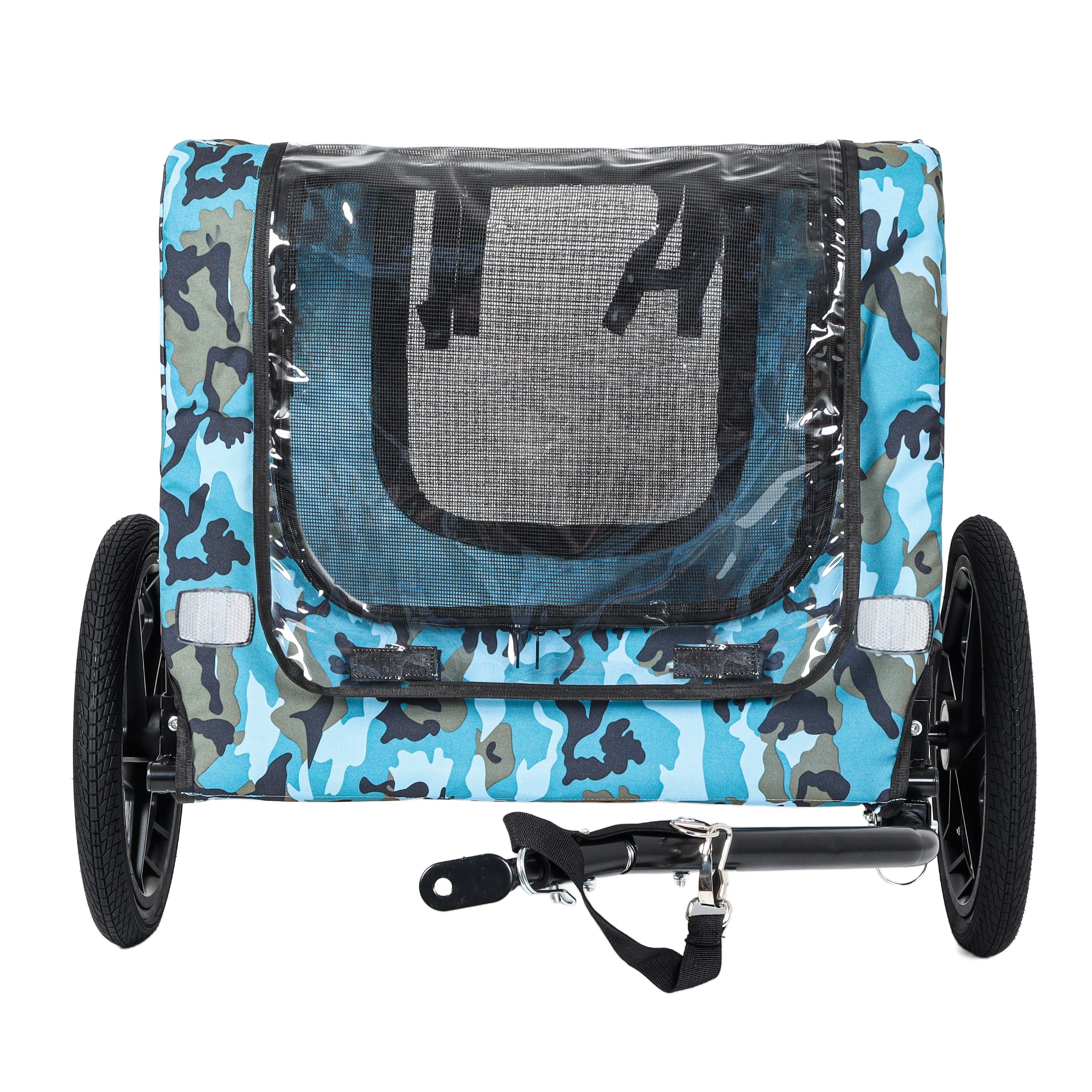 Outdoor Heavy Duty Collapsible Pet Bike Trailer with 16-Inch All-Terrain Wheels & Universal Hitch – Foldable Dog/Cargo Carrier Cart for Bicycles, blue+black