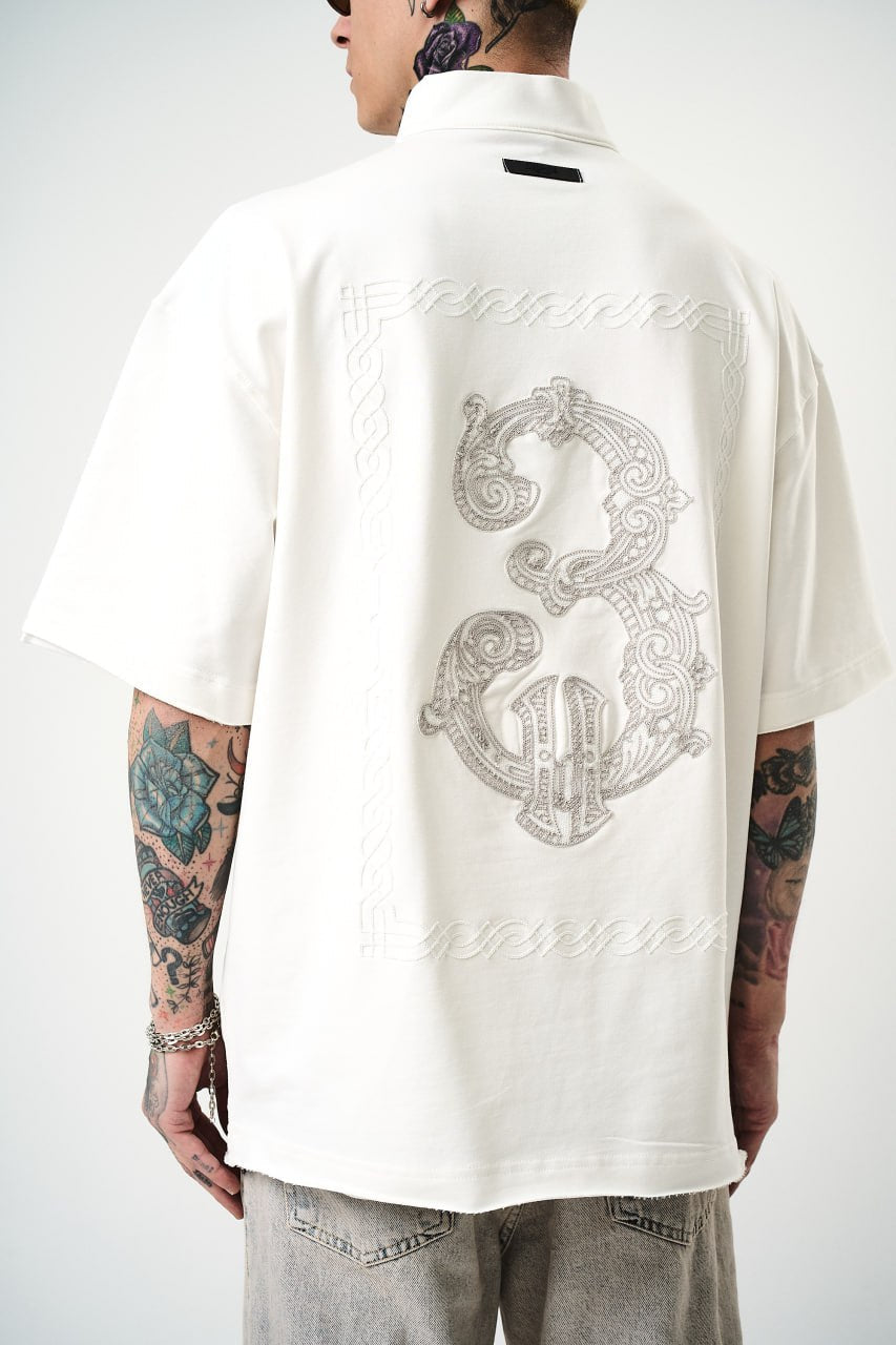 Oversize Cotton Tee - Half-Zip High Neck Chain Graphic Shirt ‐ White / XL