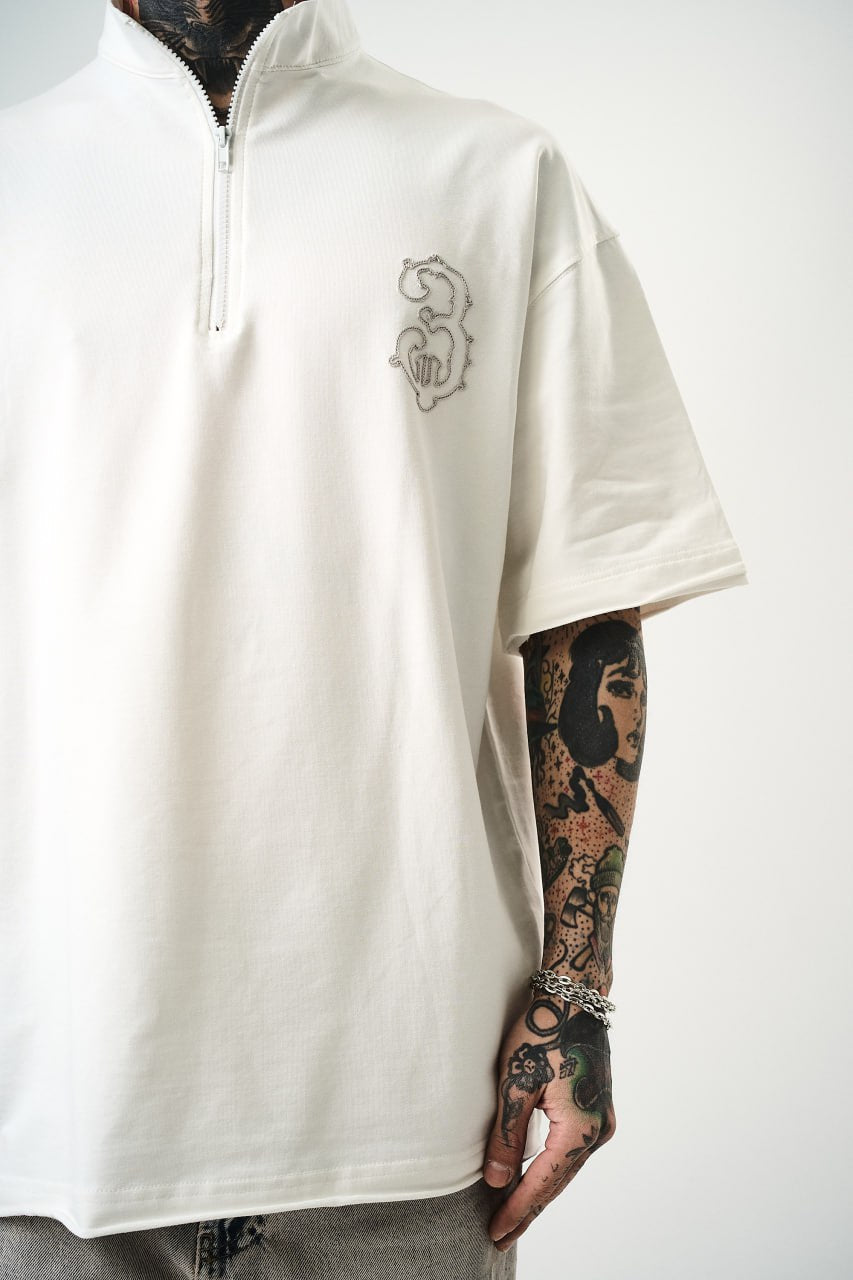 Oversize Cotton Tee - Half-Zip High Neck Chain Graphic Shirt ‐ White / S