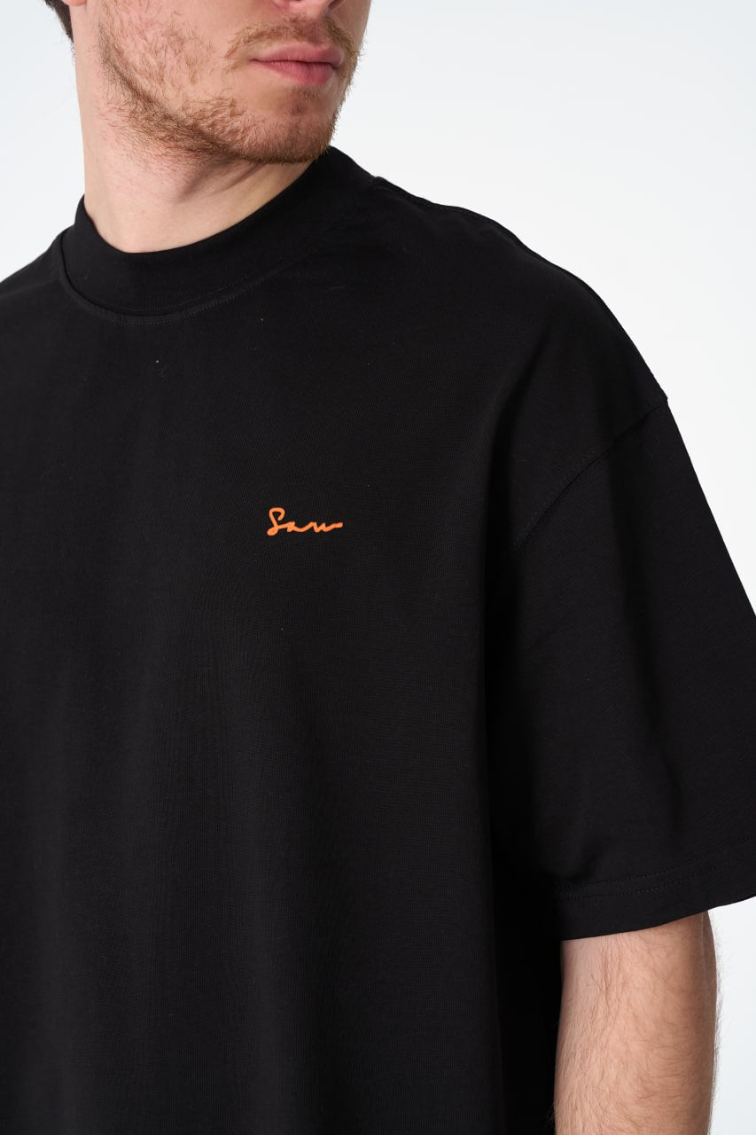 Oversize Cotton Tee / Hexagon Mosaic Graphic Print "OUR ART ERA SAW" ‐ Black / S