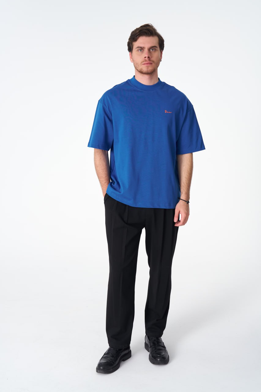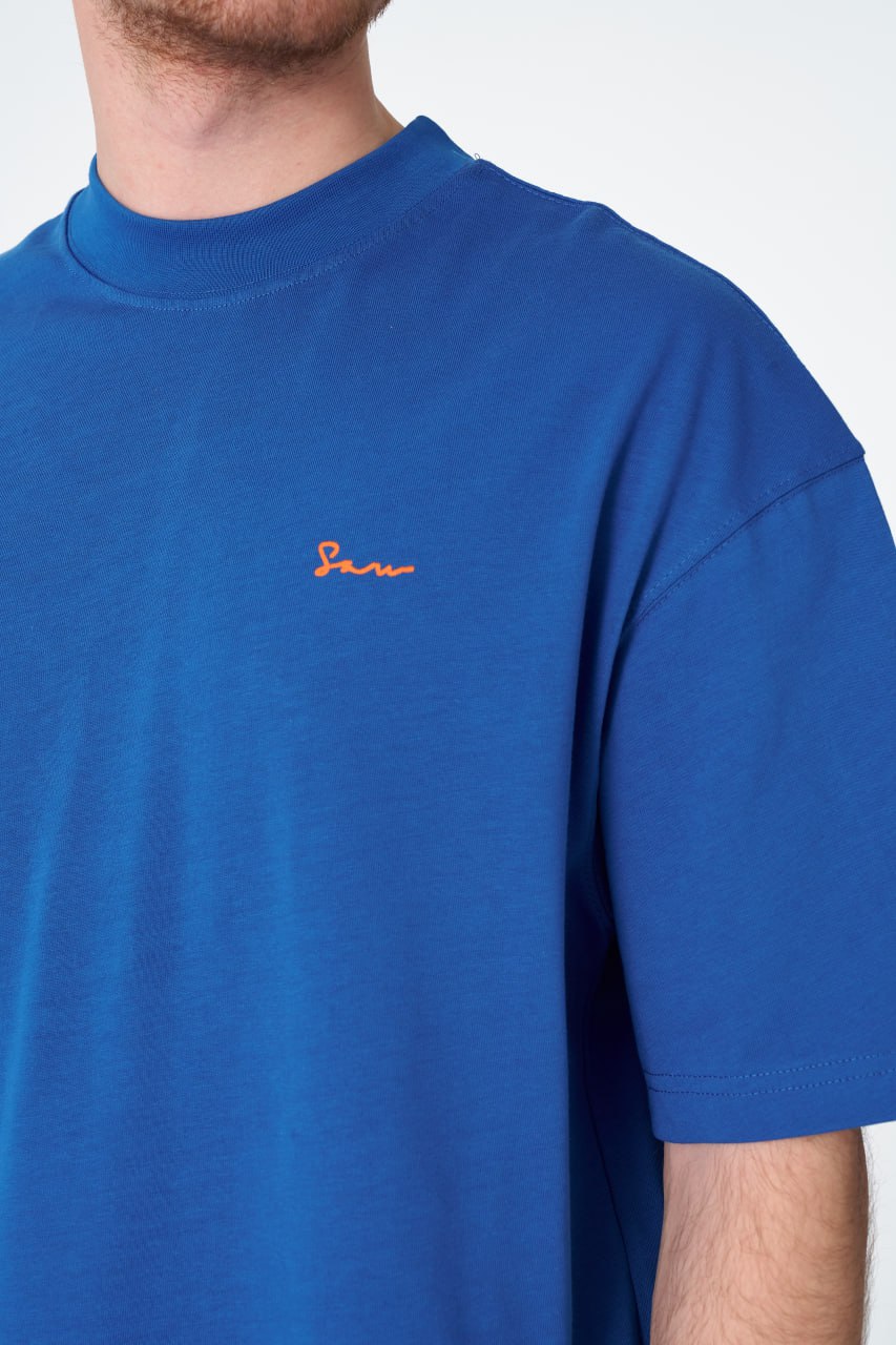 Oversize Cotton Tee / Hexagon Mosaic Graphic Print "OUR ART ERA SAW" ‐ Royal Blue / S