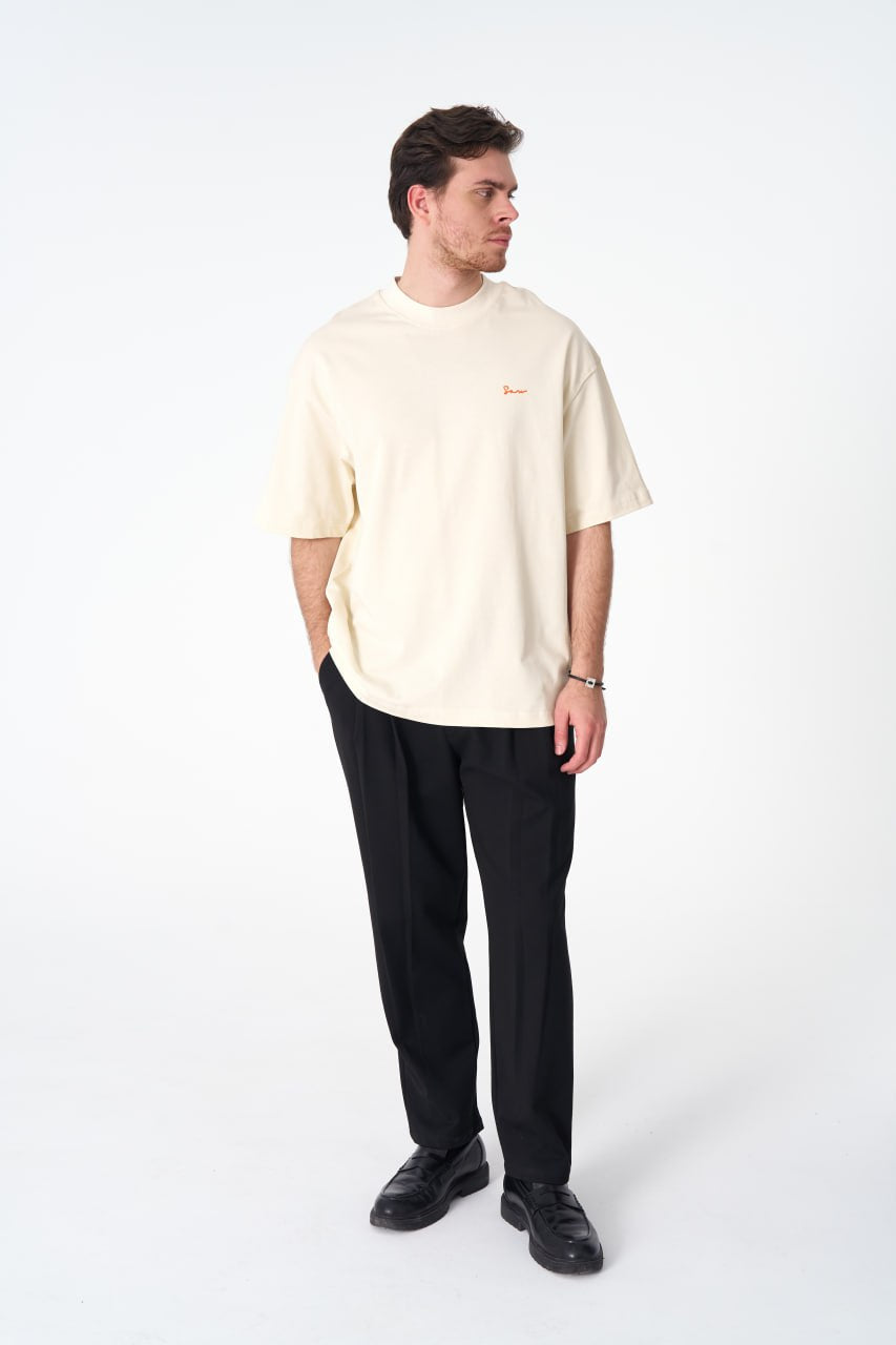 Oversize Cotton Tee / Hexagon Mosaic Graphic Print "OUR ART ERA SAW" ‐ Cream / S