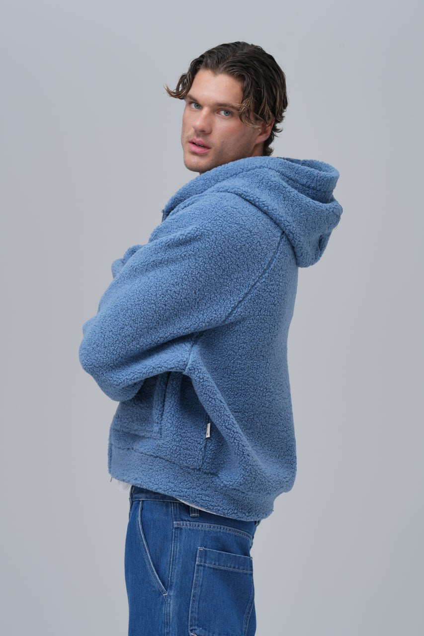 Oversized Sherpa Zip-Up Hoodie – Unisex Streetwear Comfort ‐ Blue / S