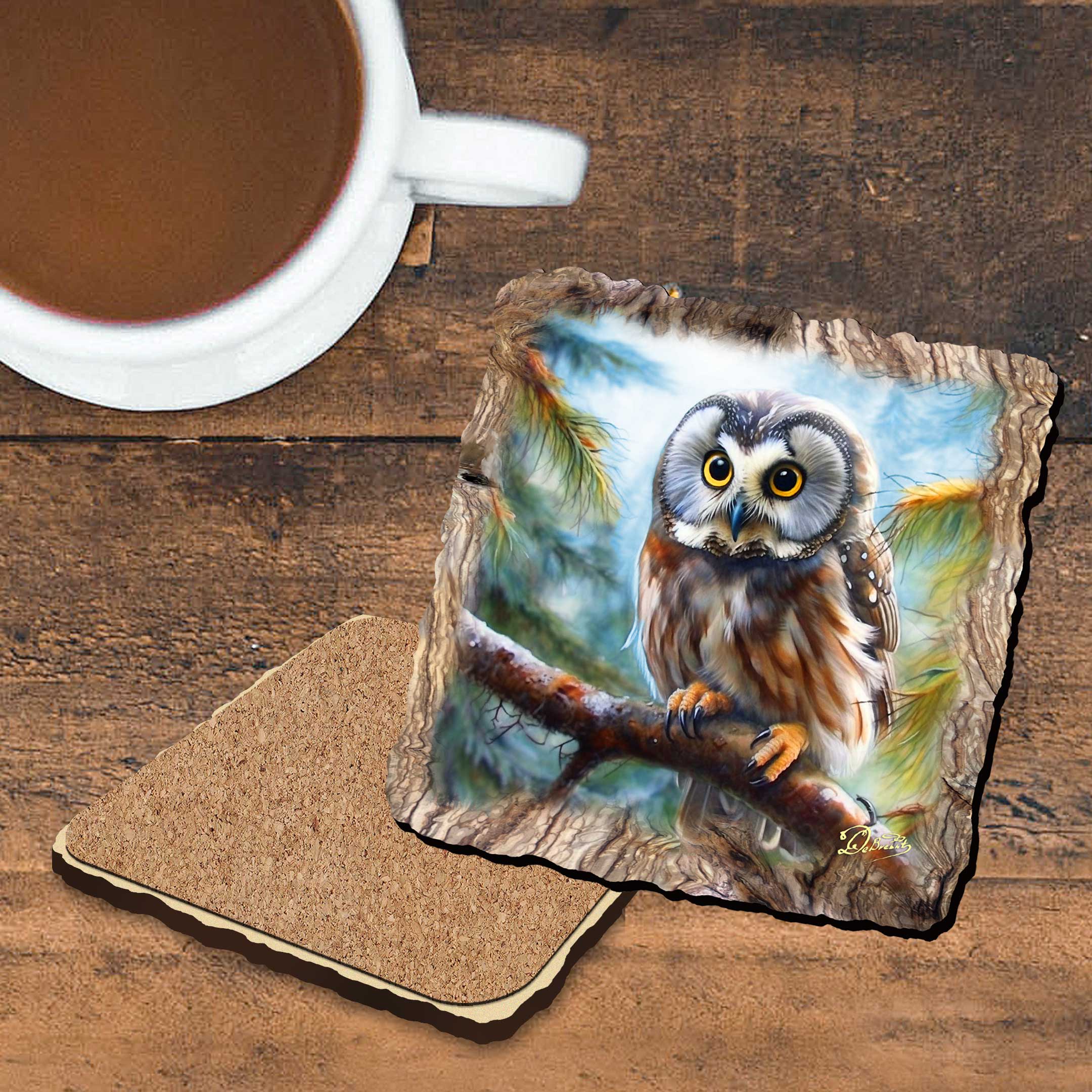Expertly crafted from 100% natural wood, these Owl Wooden Cork Coasters by Nature Wonders are the perfect addition to any nature lover's home. Each set of 4 features intricate designs of owls and forests, adding a touch of wildlife and charm to your Decor. Protect your surfaces in style with this unique gift set.