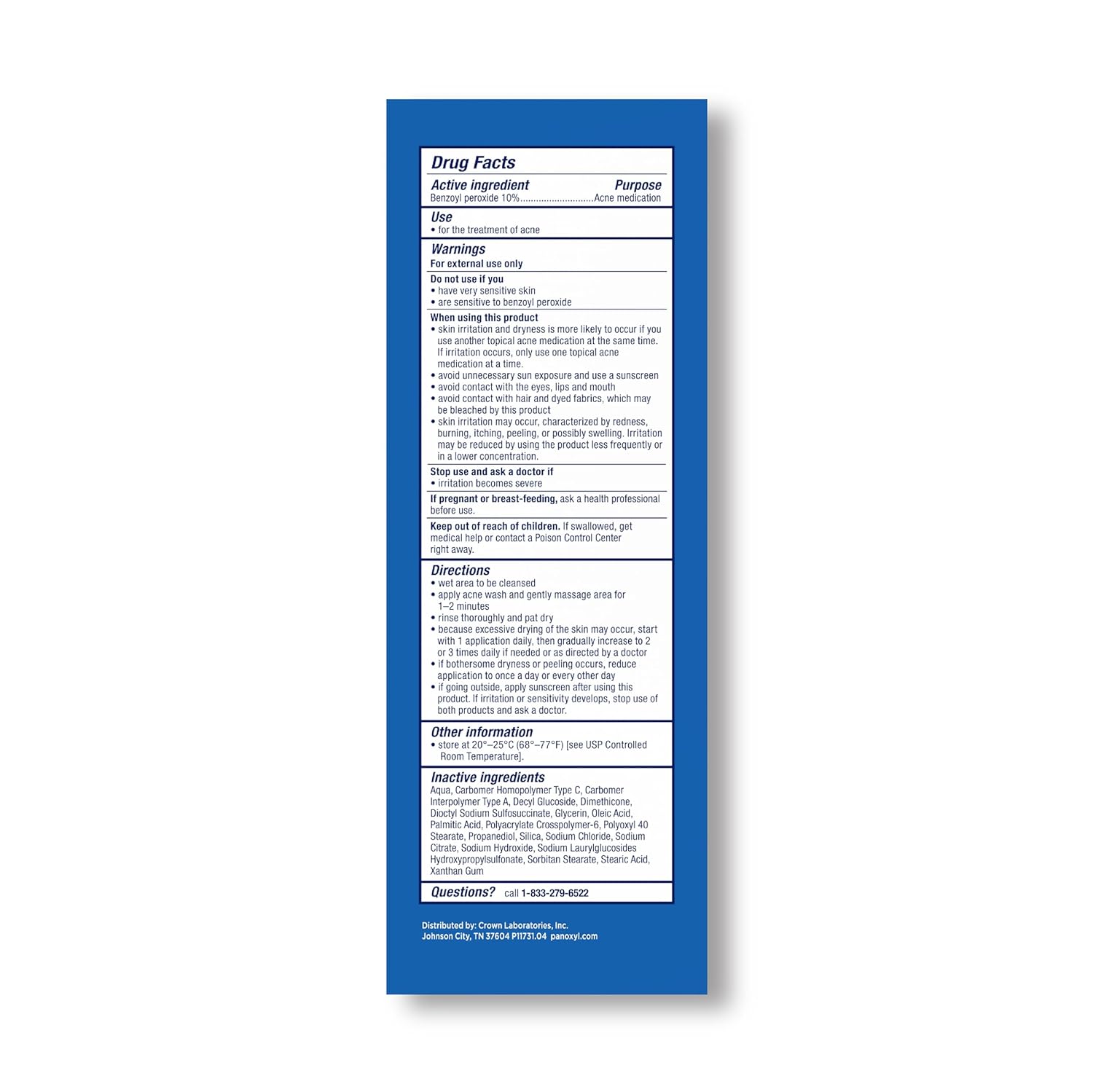 Panoxyl Maximum Strength acne foaming face Wash, contains 10% benzoyl peroxide. Maximum strength foaming wash. Effectively penetrates pores killing the bacteria that cause acne. Clears existing acne blemishes and prevents new blemishes from forming. The highest strength of benzoyl peroxide available without a prescription. Gently removes dirt and excess oil to cleanse and unclog pores. Makes it an excellent choice for the management of acne on the face, chest and back.