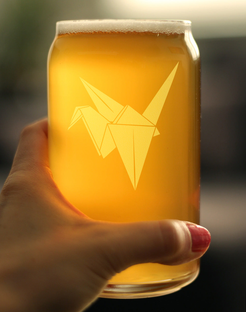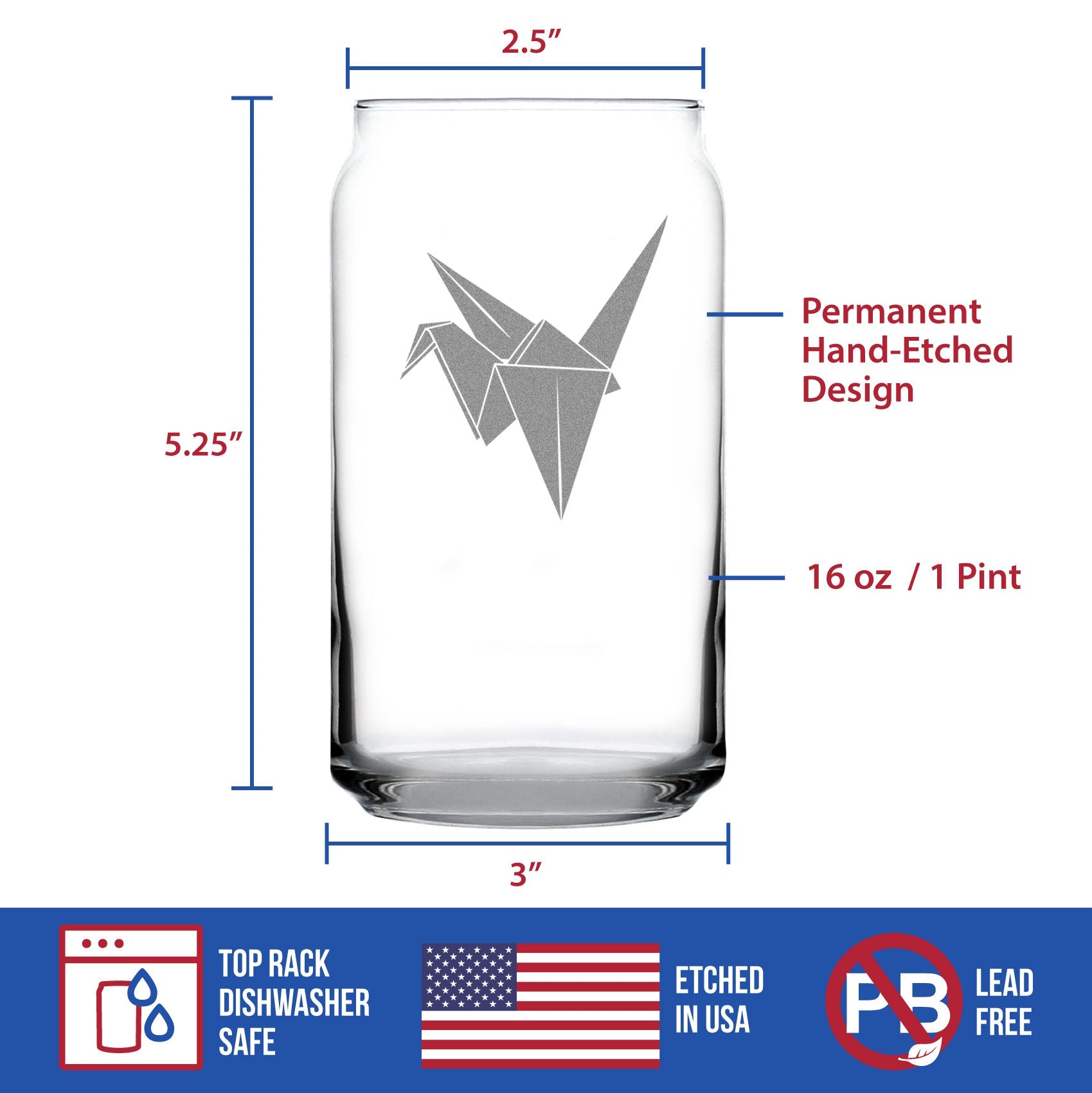 Paper Crane Engraved Beer Can Glass Japanese Decor and Gifts Beer Can Shaped Pint Glass - 16oz