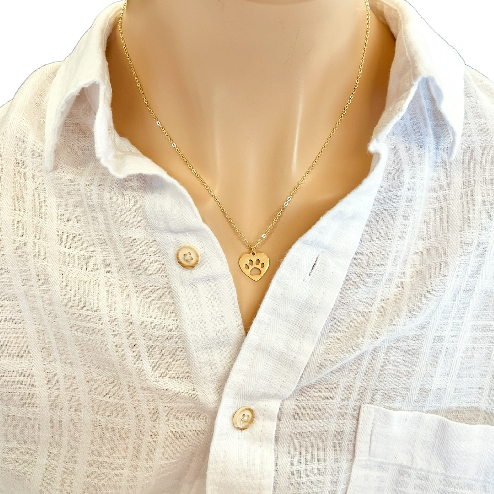 Show off your love for your furry friend with our paw print necklace. Crafted from gold-plated metal, this heart-shaped jewelry is perfect for any dog or cat lover. A playful and stylish addition to any outfit!