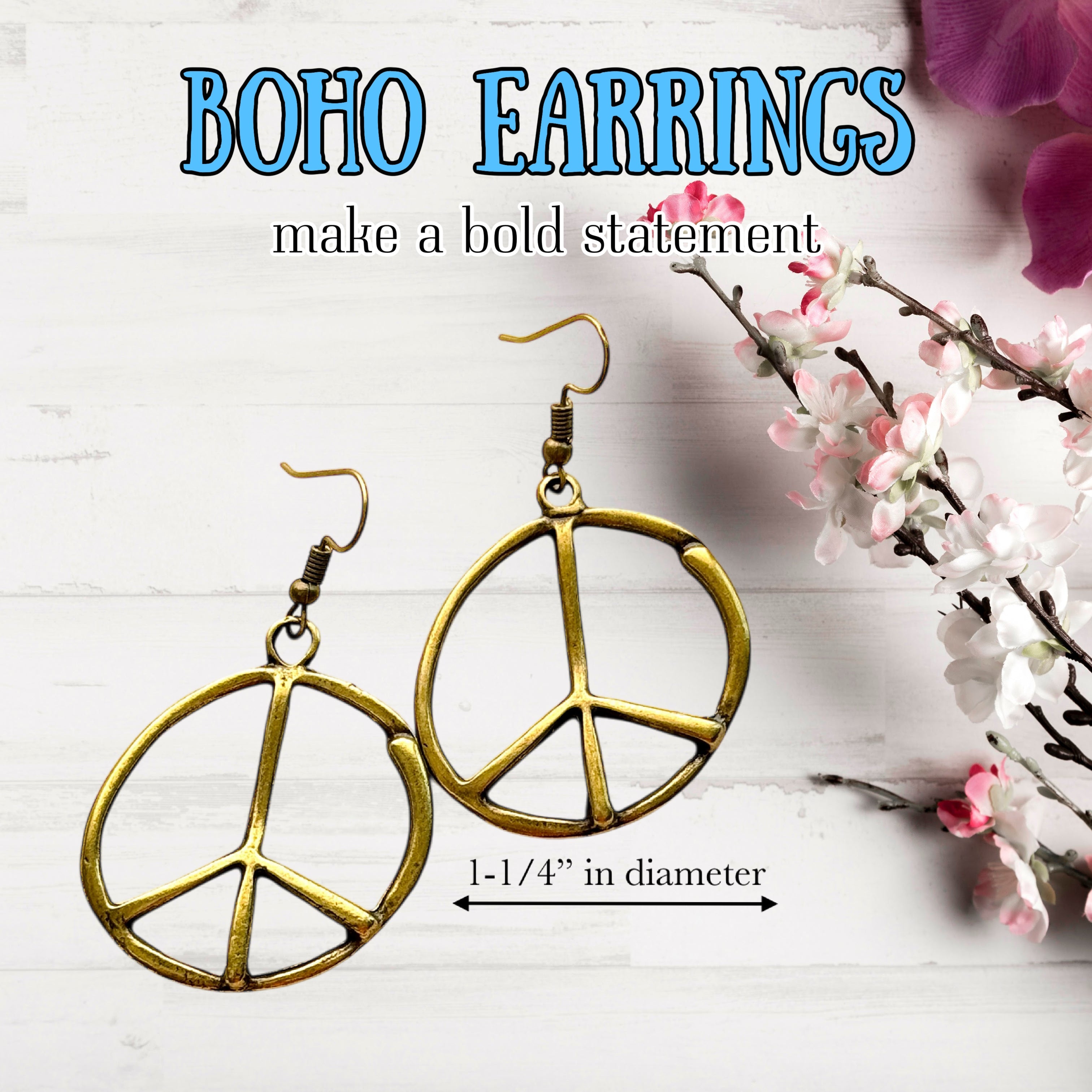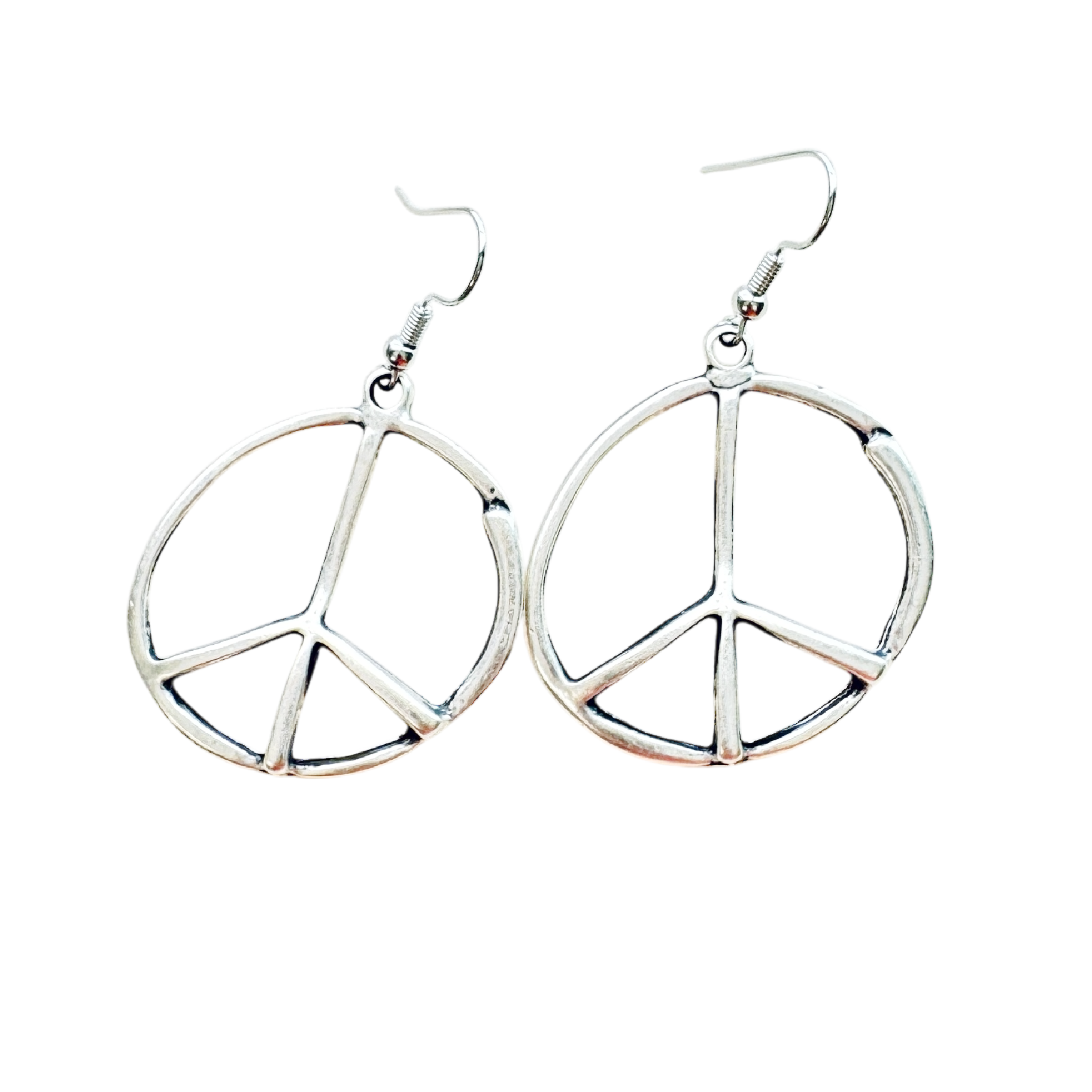 Get your peace sign fix with these earrings! Show off your inner hippie with these groovy accessories. Perfect for adding a touch of peace and love to any wardrobe.