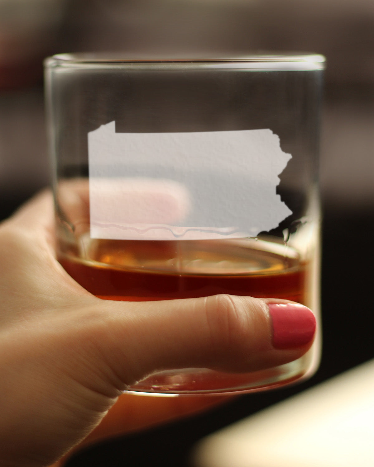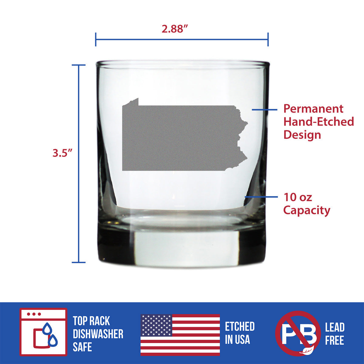 Pennsylvania State Outline Whiskey Rocks Glass - State Themed Drinking Decor and Gifts for Pennsylvanian Women & Men - 10.25 Oz Whisky Tumbler Glasses