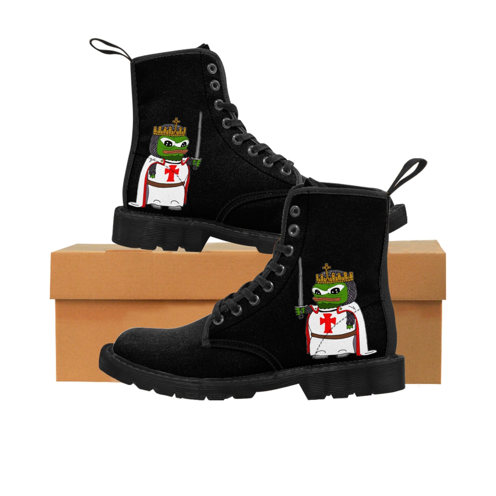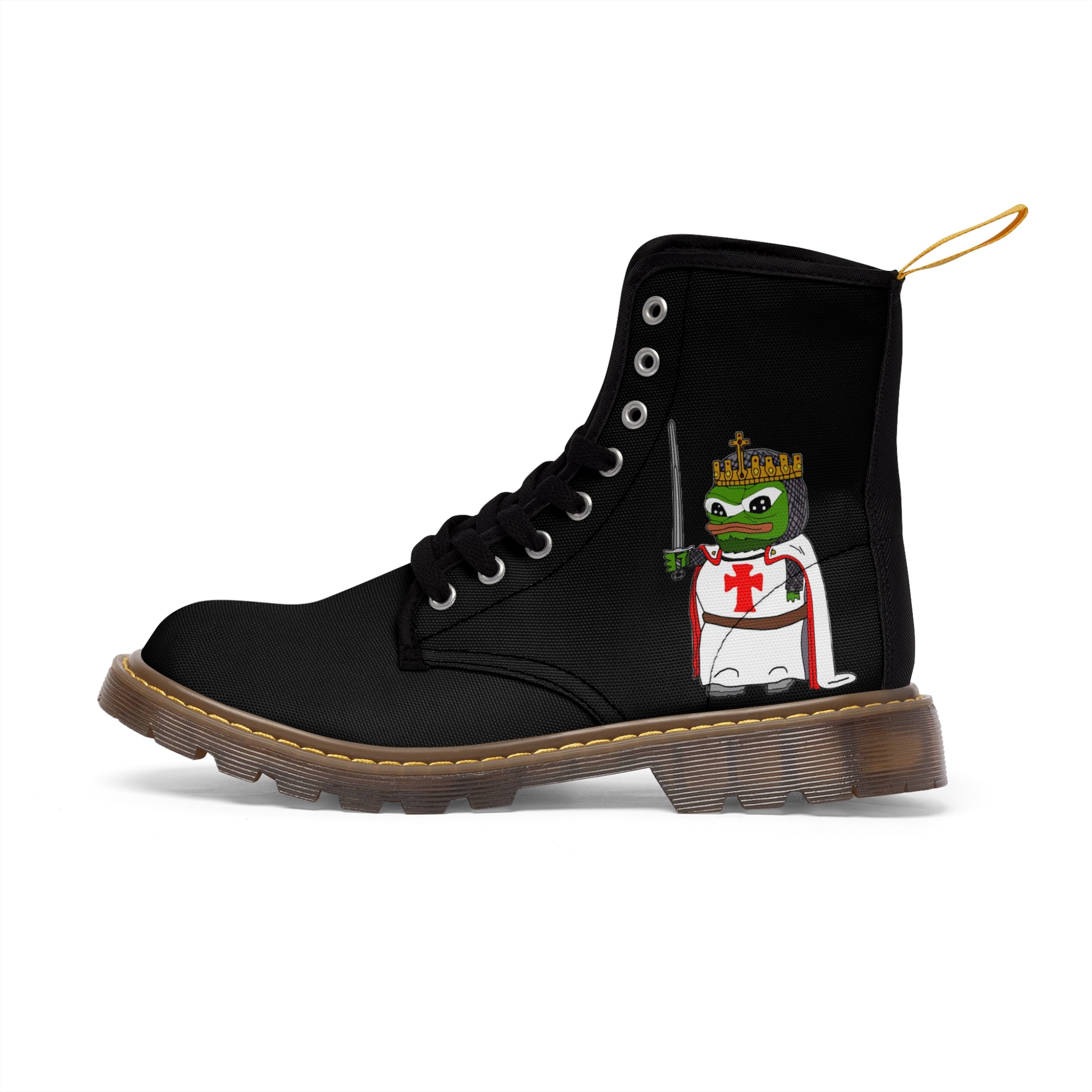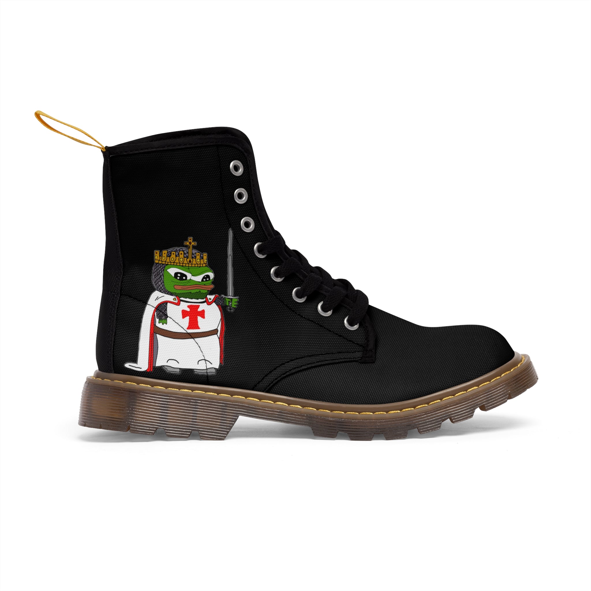 Introducing our Men's Canvas Boots: "Frogsader Knights" Edition! Step into a world where history meets humor, and Pepe the Frog dons the armor of a legendary crusader knight! These boots are not just a leap in style; they're a quantum leap through time!