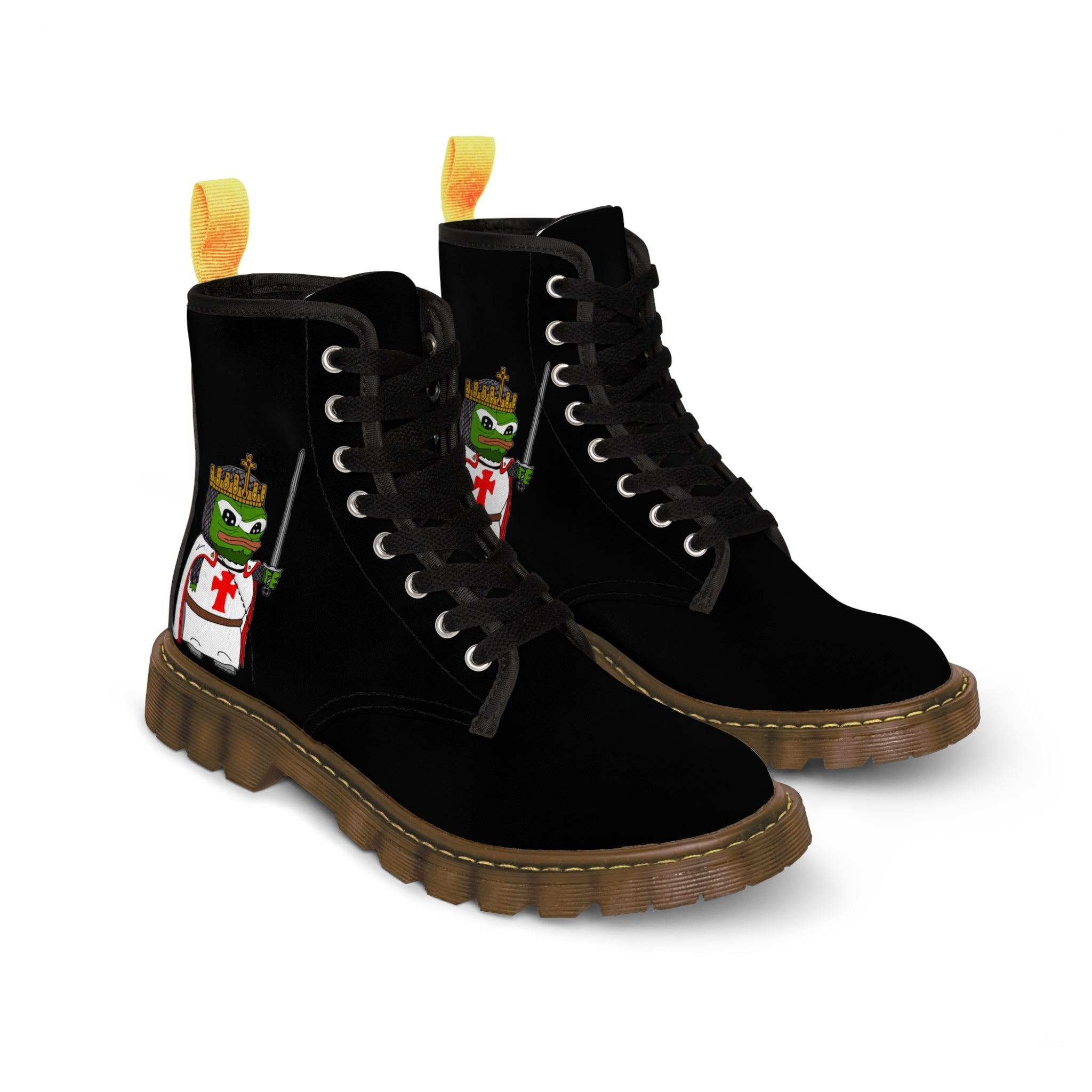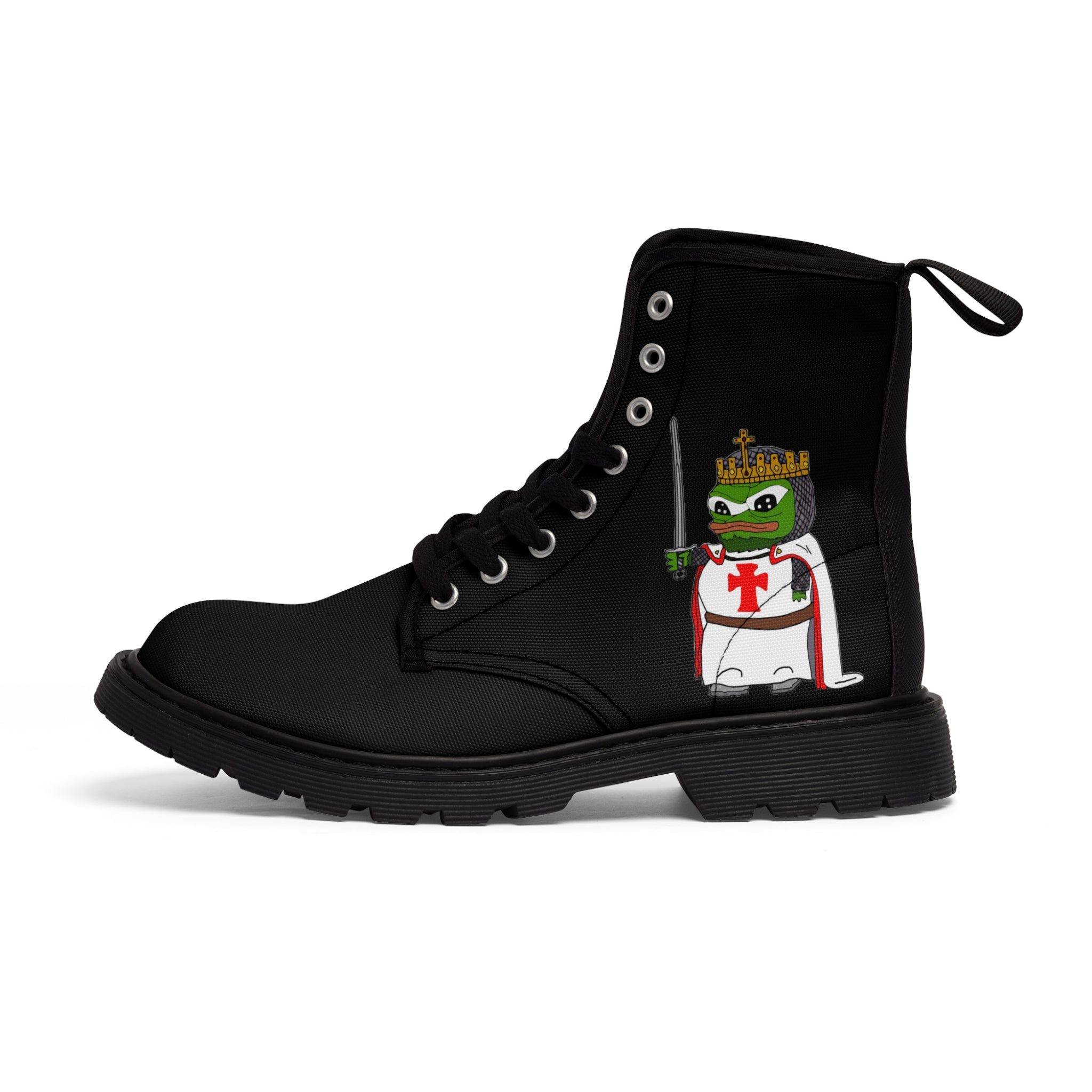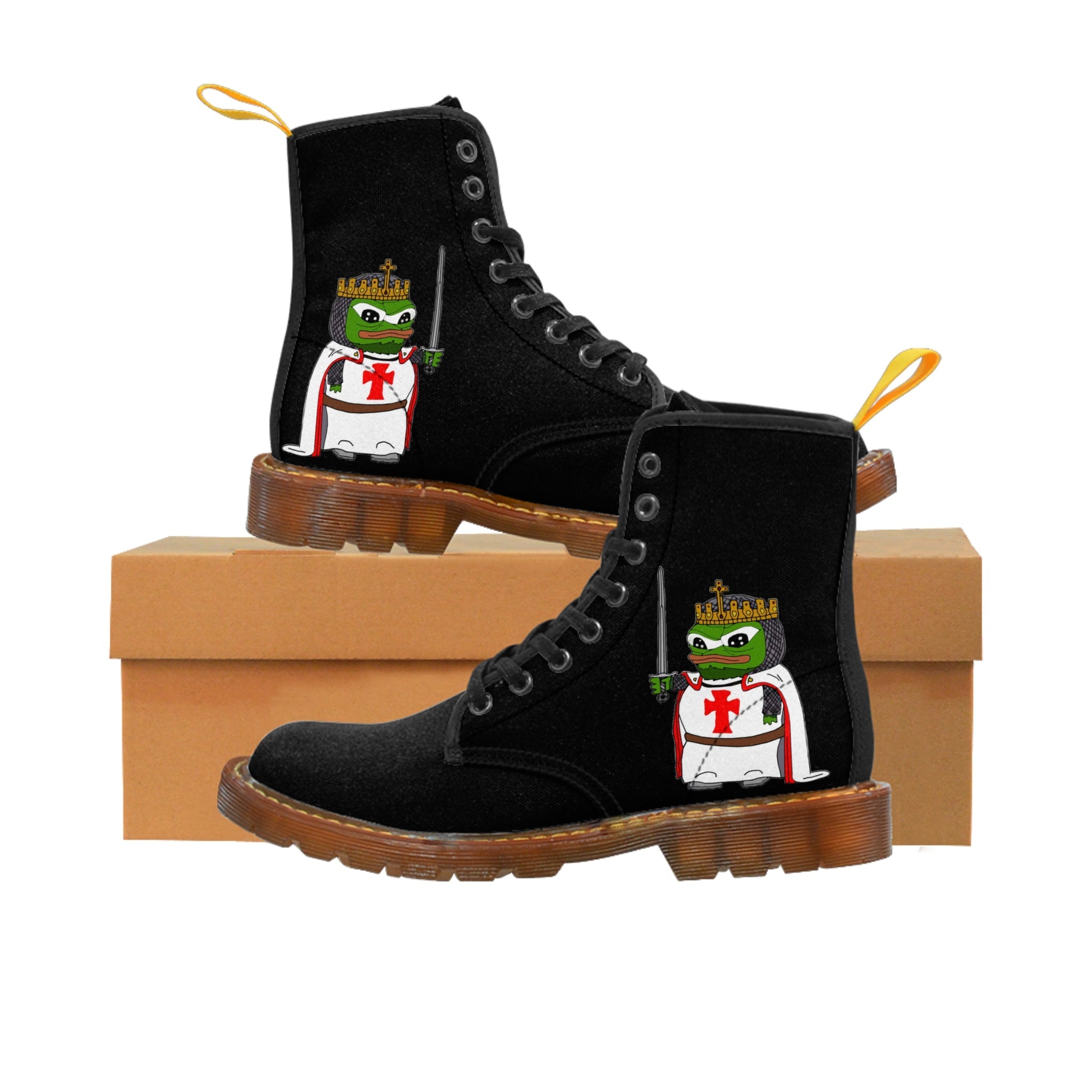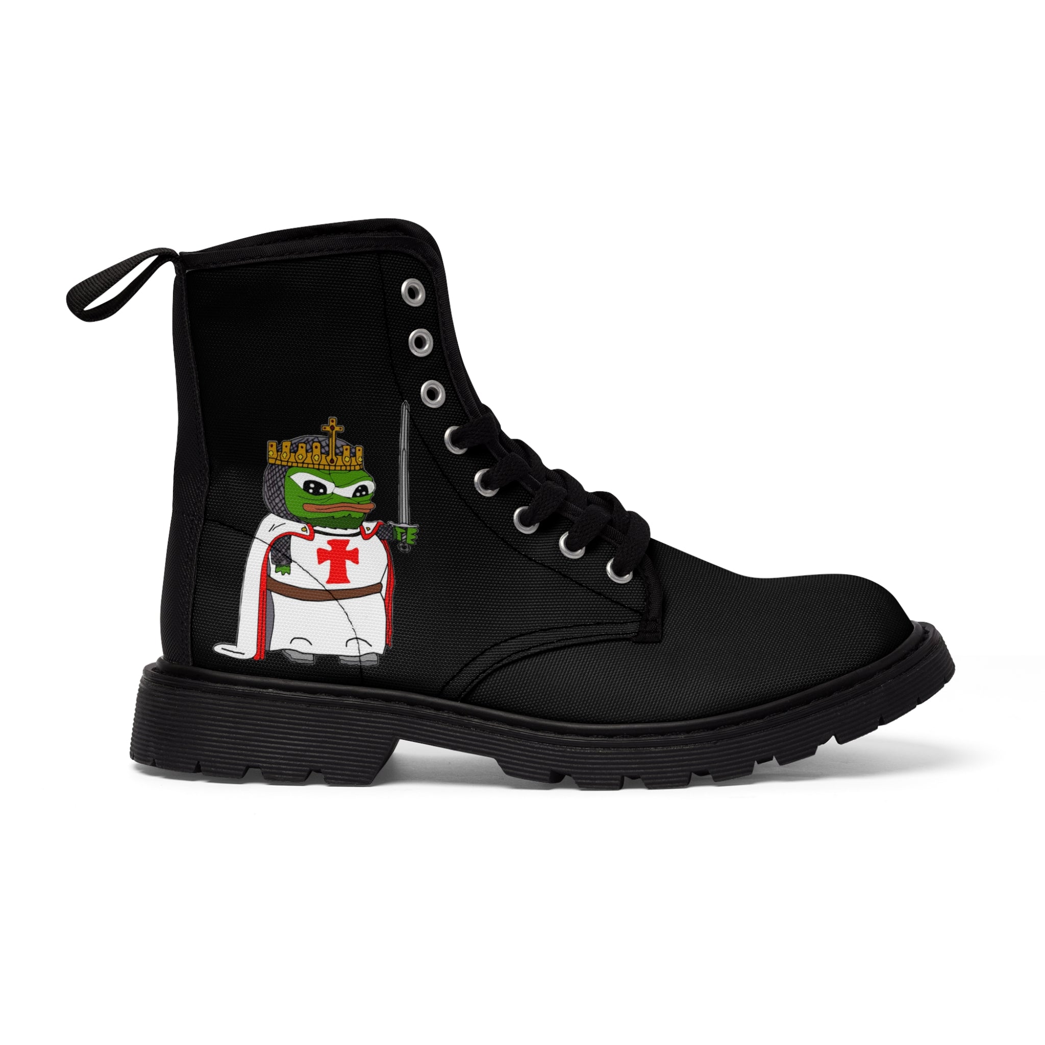 Introducing our Men's Canvas Boots: "Frogsader Knights" Edition! Step into a world where history meets humor, and Pepe the Frog dons the armor of a legendary crusader knight! These boots are not just a leap in style; they're a quantum leap through time!