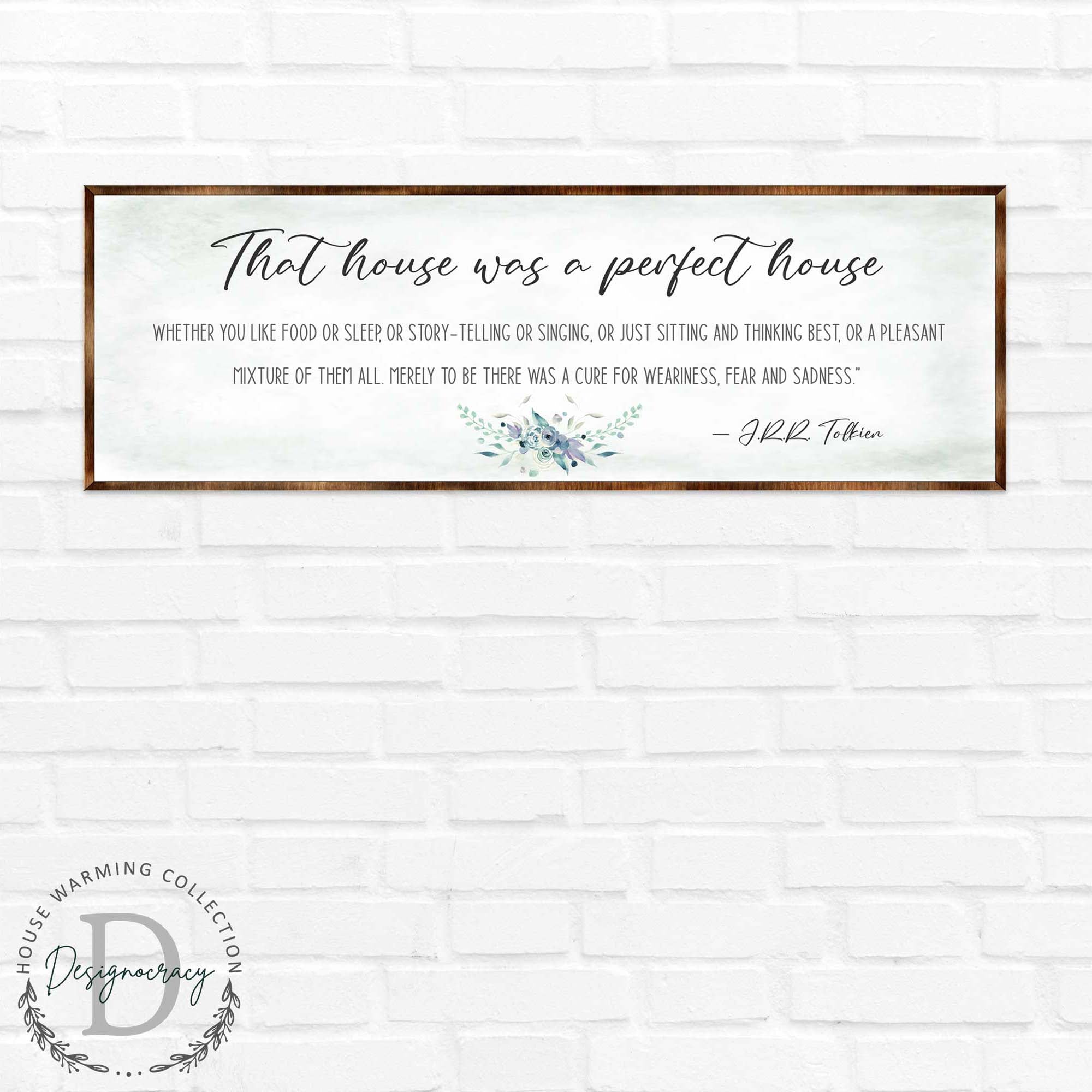 Perfect House - Wooden Inspirational Decor - JRR Tolkien - Book Quotes - Housewarming Gift - Lord of the Rings - Living Room - 310322 ‐ Medium 36"x12"