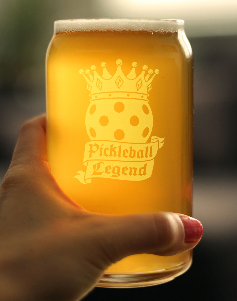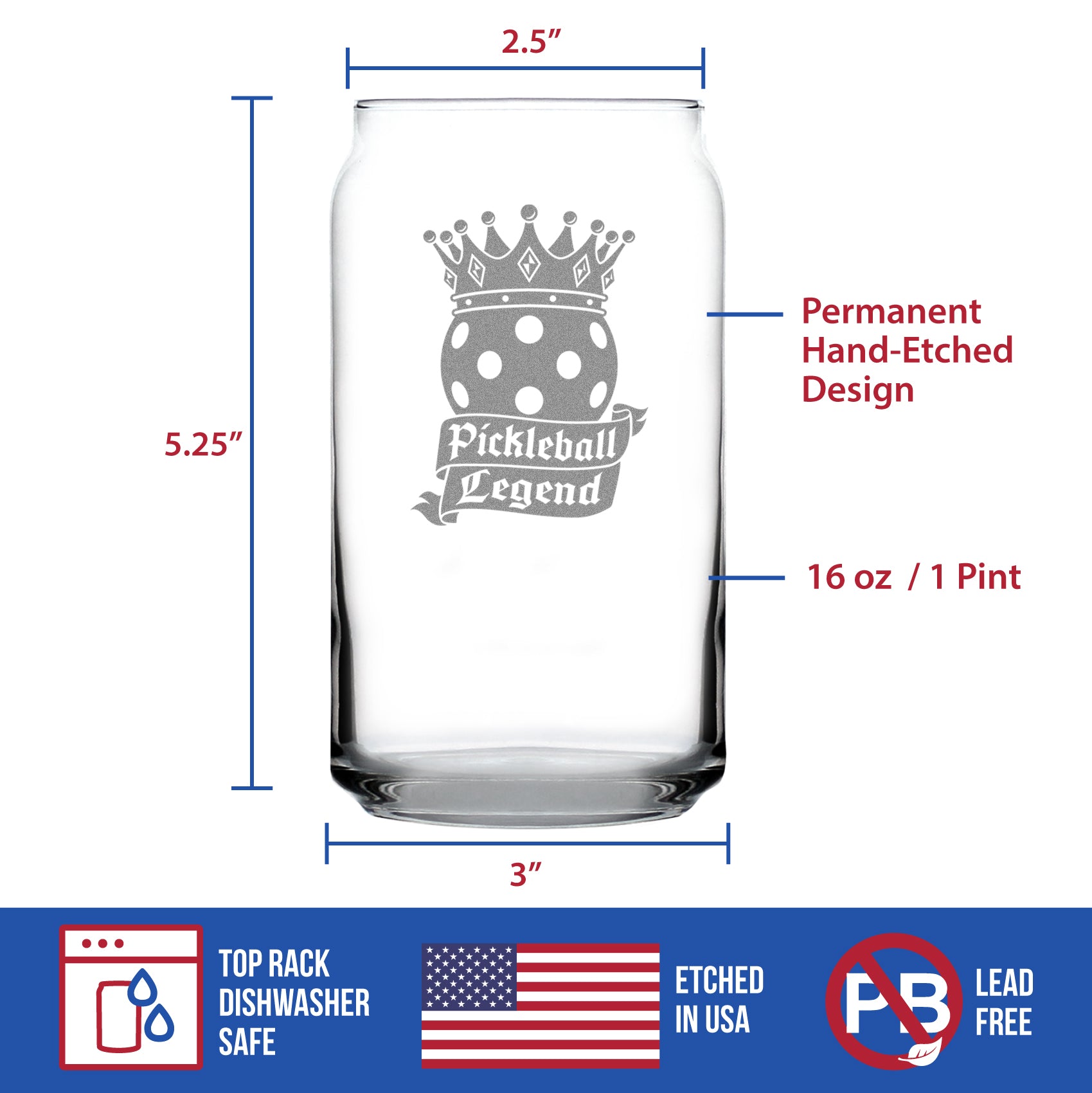 Pickleball Legend Engraved Beer Can Glass Gifts for Picklers Beer Can Shaped Pint Glass - 16oz