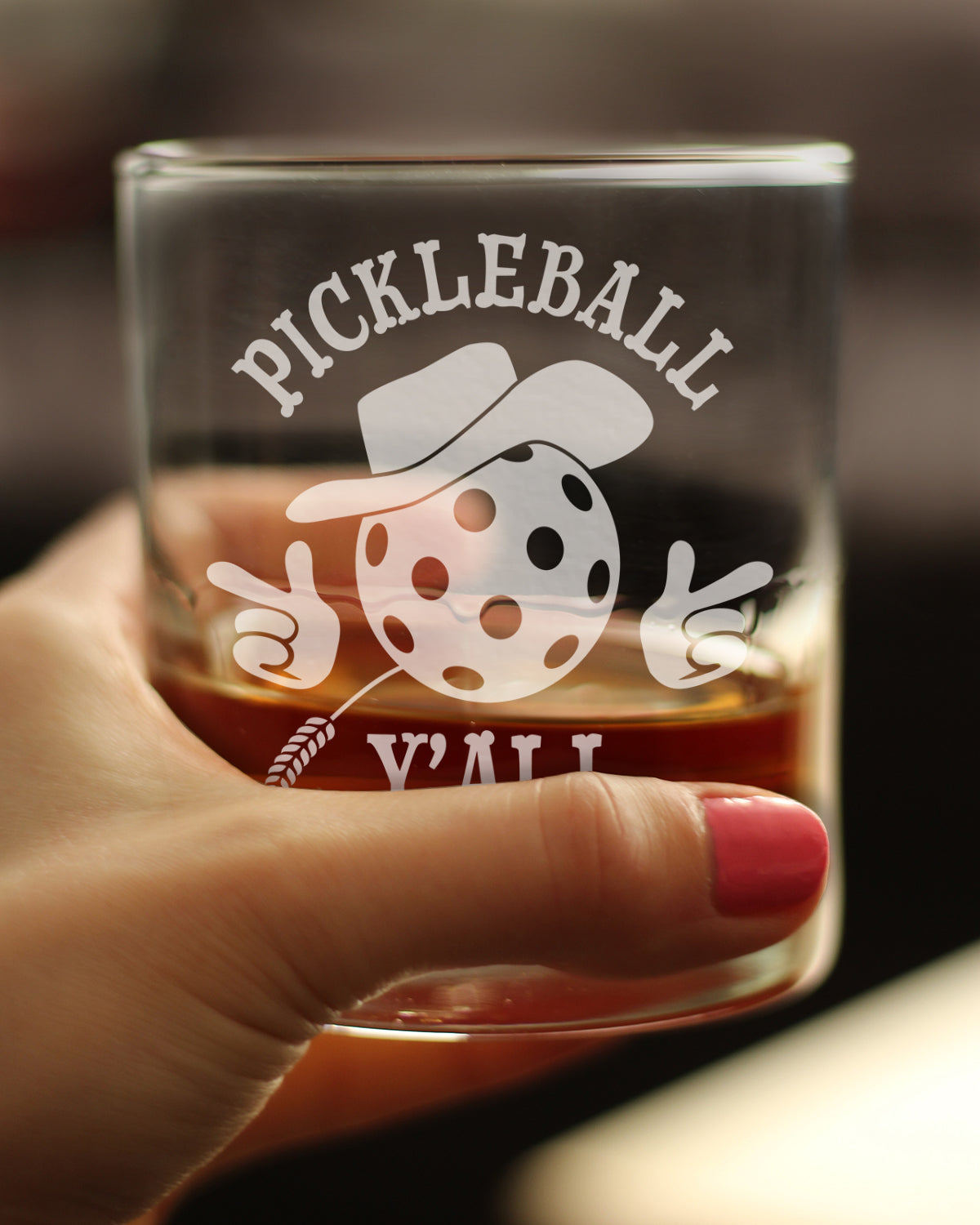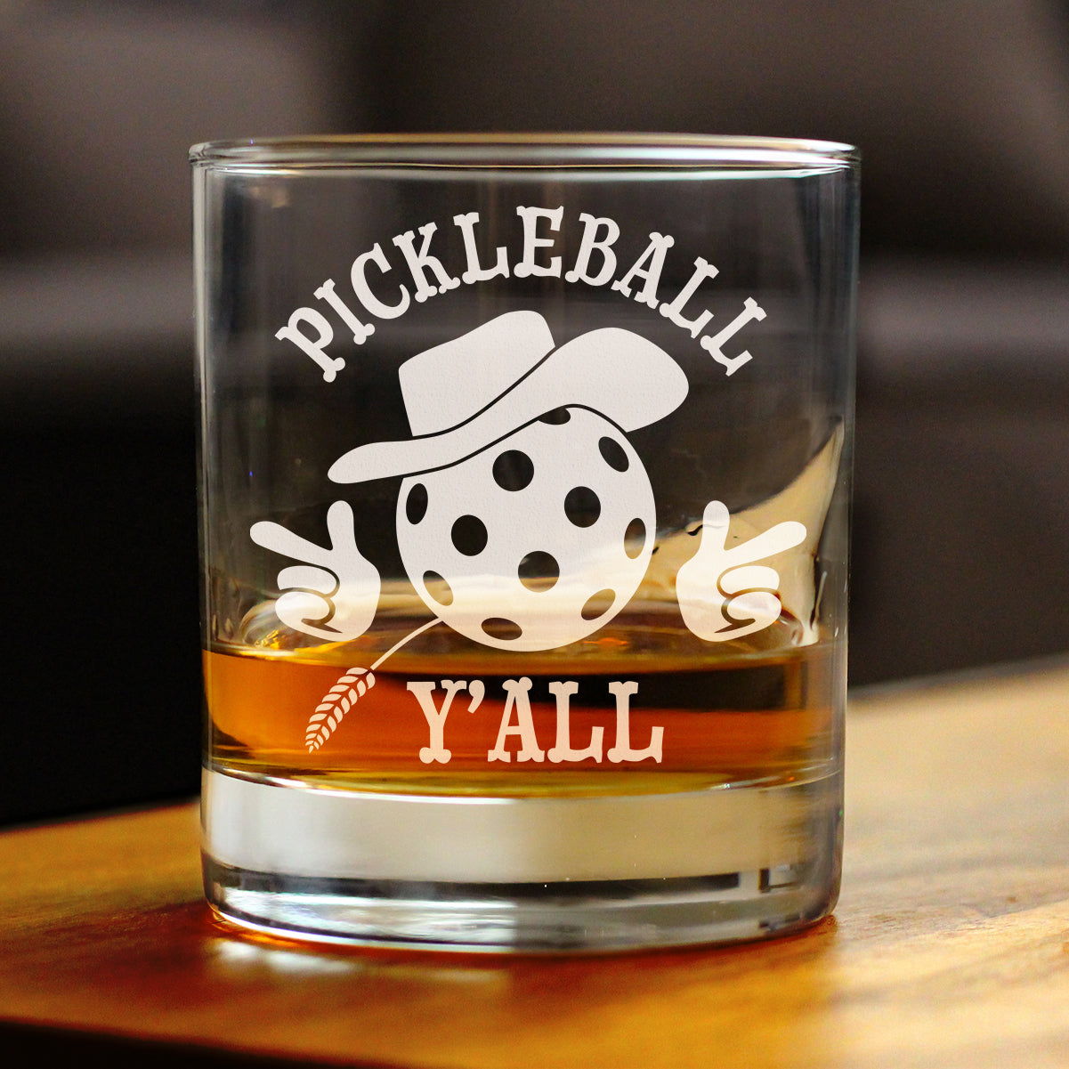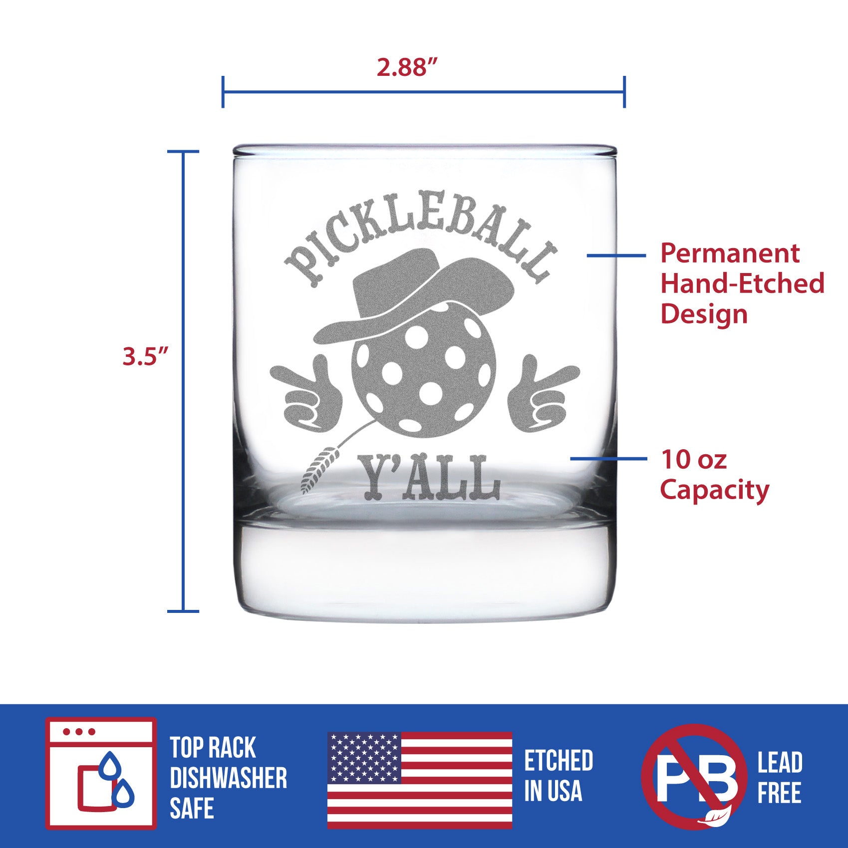 Pickleball Y'all Engraved Rocks Glass Gifts Funny Pickleball Gifts Weighted Whiskey Glasses - 10.25 oz