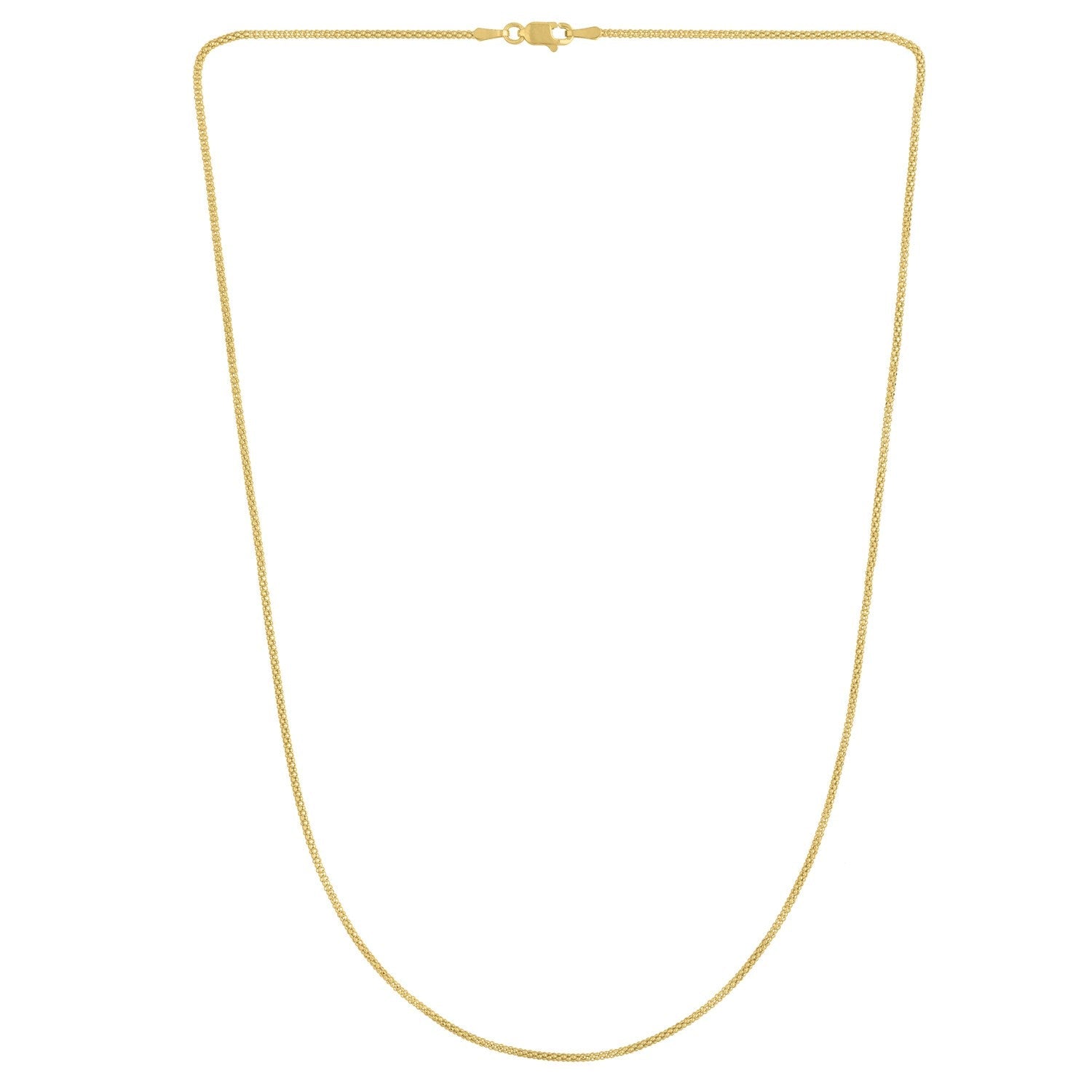 This chain crafted in 14k yellow gold features a popcorn design and measuring 1.3 millimeters. Secured with a lobster clasp.