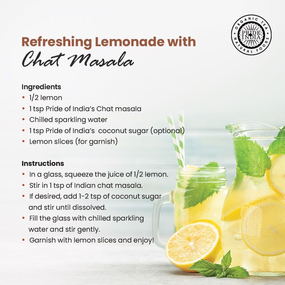 Tangy and Tangible Chaat Masala spice blend offers tangy flavors, perfect for sprinkling over fruits, salads, snacks, and your favorite mocktails & cocktails. |